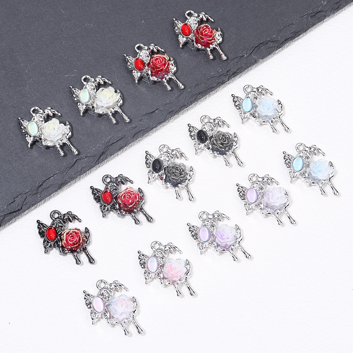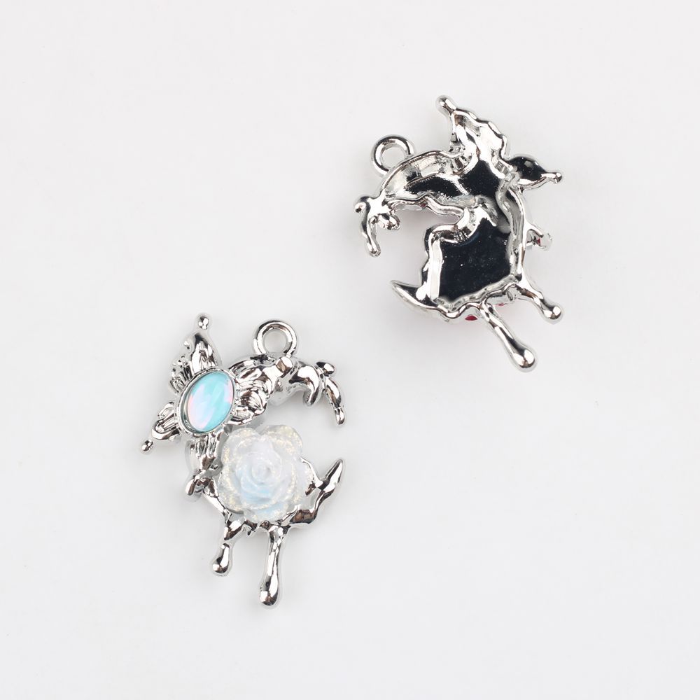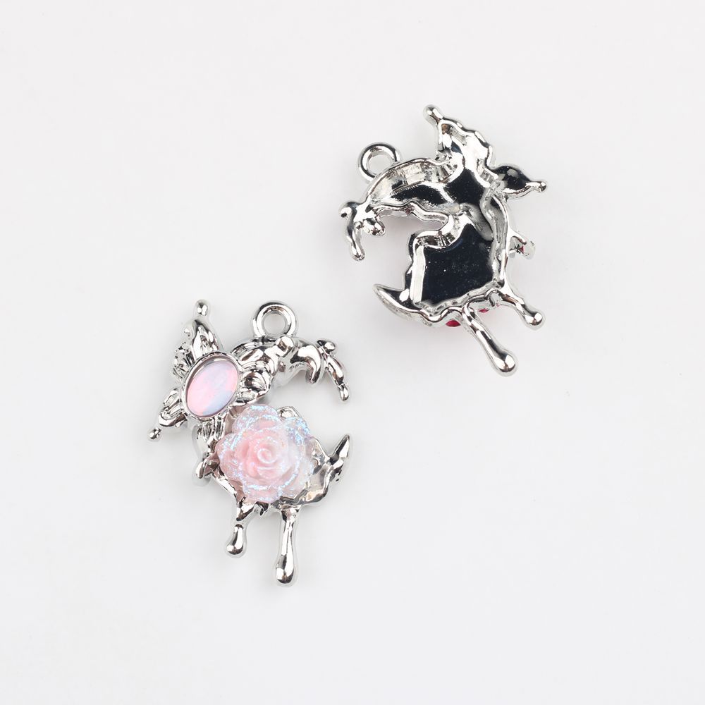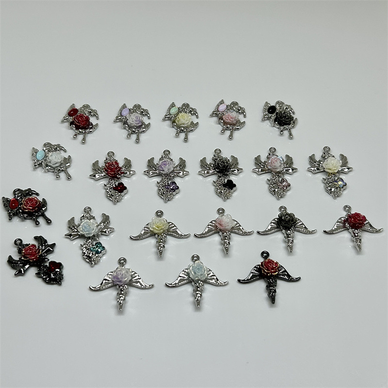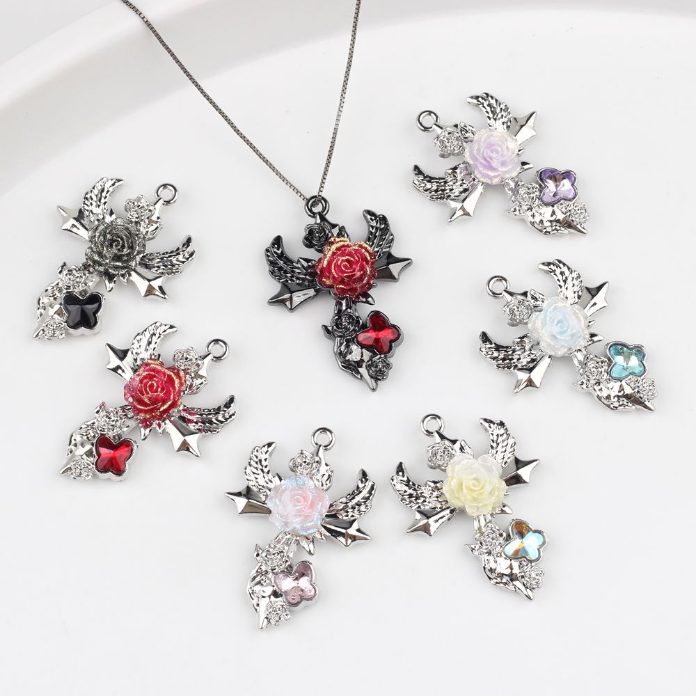 简约合金锆石蝴蝶树脂玫瑰花十字架吊坠挂件DIY手链耳饰等配件