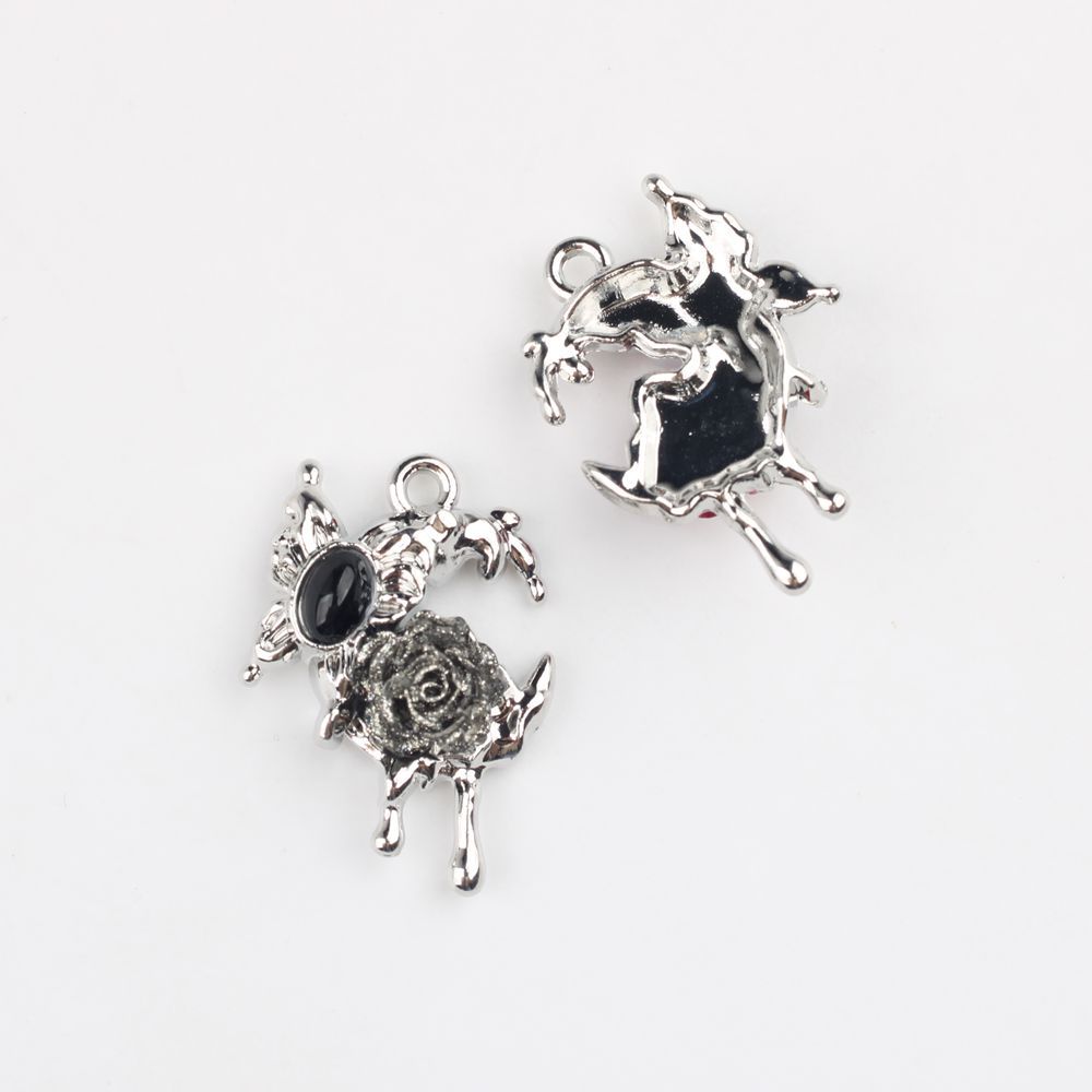 跨境暗黑系配饰万圣节枪黑色蜘蛛蝴蝶玫瑰吊坠diy合金饰品配件