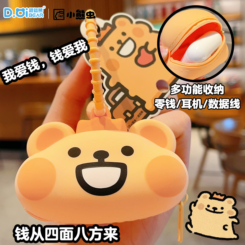 本物のクマの虫小銭入れキーホルダーポータブルヘッドフォン収納袋クリエイティブかわいいミニバッグペンダント