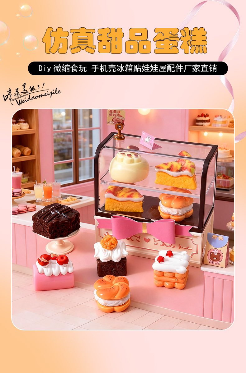 仿真微缩蛋糕甜品糕点树脂配件 桌面小摆件diy食玩盲袋娃屋装饰品