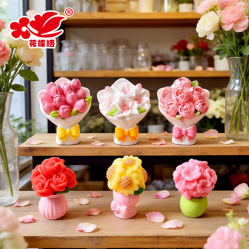 甜美少女心花束树脂配件 玫瑰郁金香diy治愈桌面摆件娃屋花店装饰