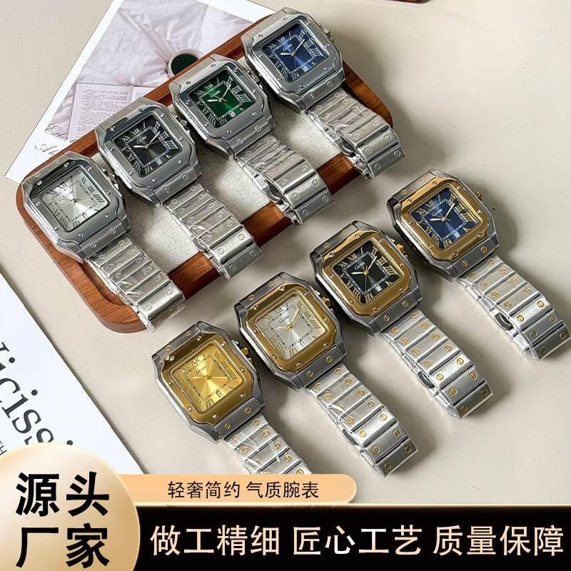 2024男士不锈钢3针方形NIRICHA手表石英秒跑日历手表厂家批发一件