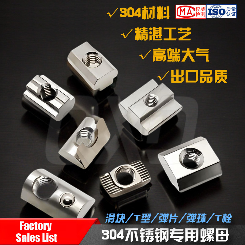 304ステンレスt型ナット20/30/40/45型欧標国標アルミ形材スライドナット船型ハンマーヘッド