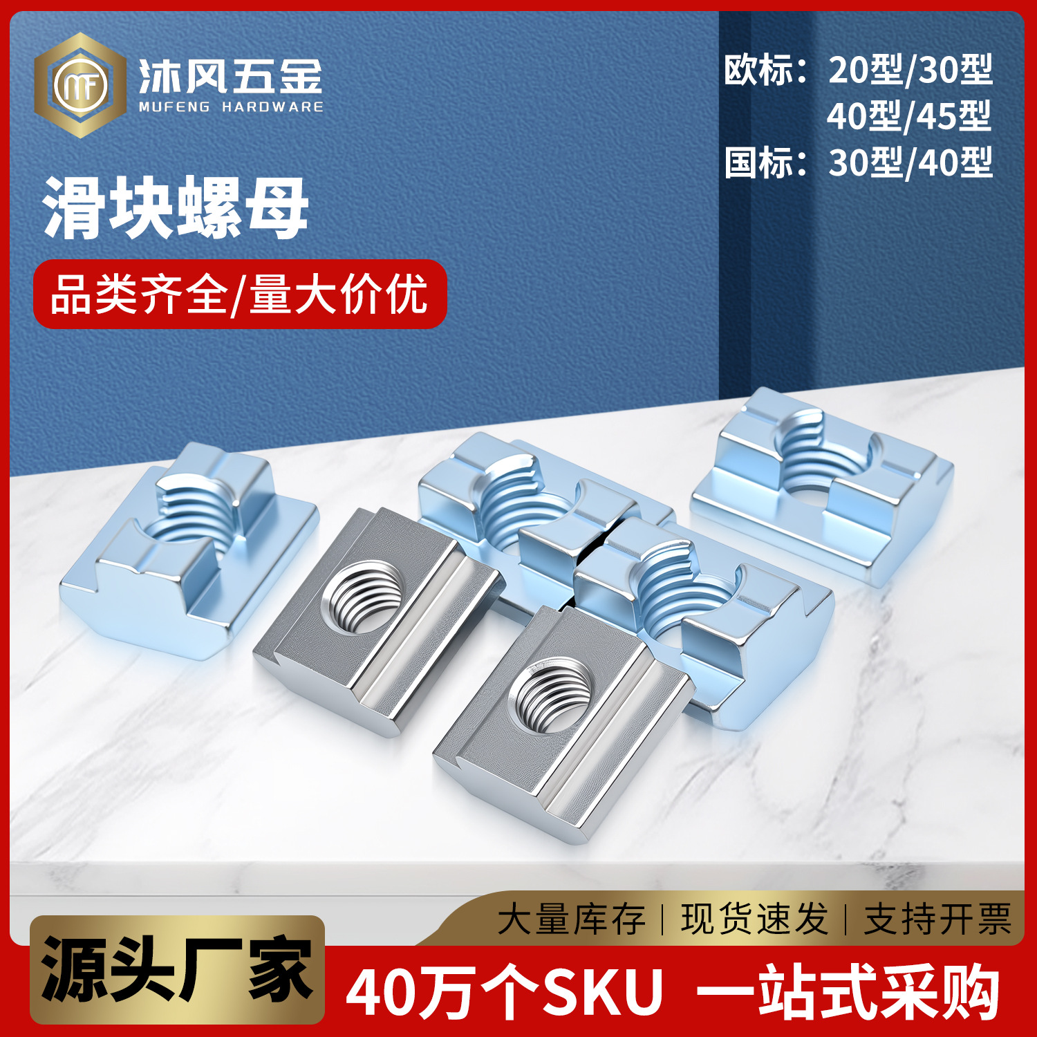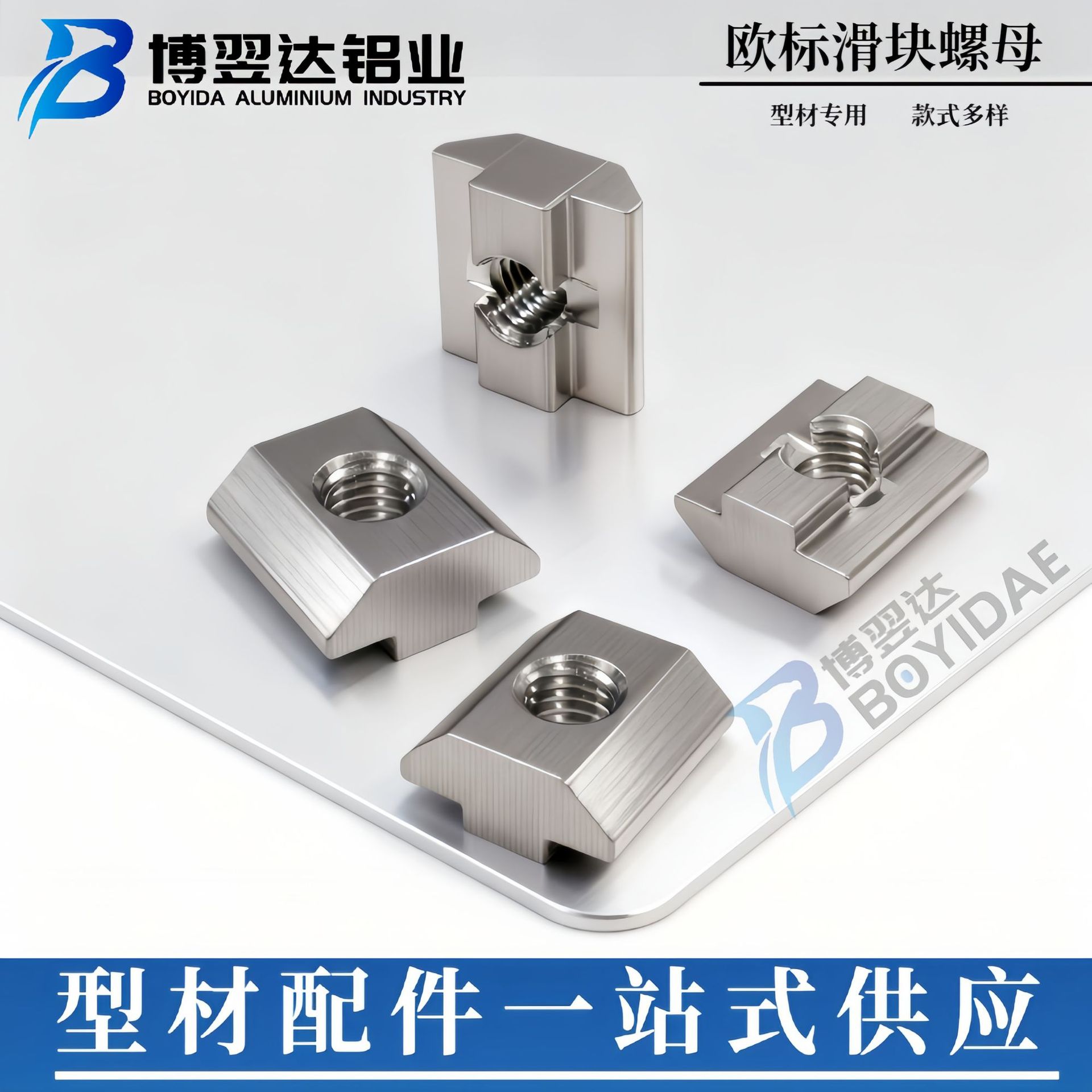 欧标镀镍T型滑块螺母铝型材配件蓝白锌国标船型螺母20/30/40/45型