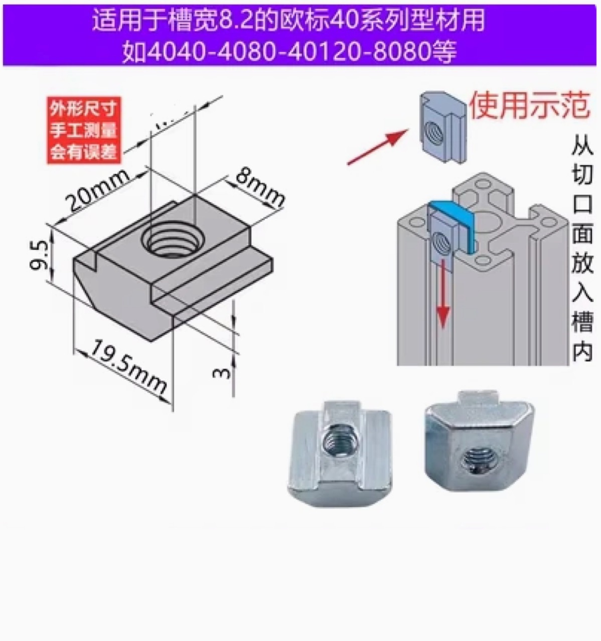 メーカー卸売スライダーナットスライダーナット40-m8スライダーナット20/30/40/45