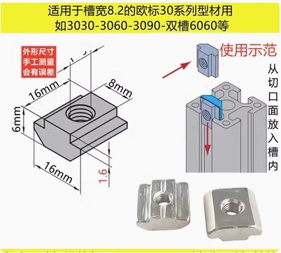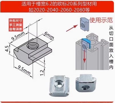欧標T型スライドナット形材専用角形ナット20-30-40-45スライドナットM4 m 5m 6m 8