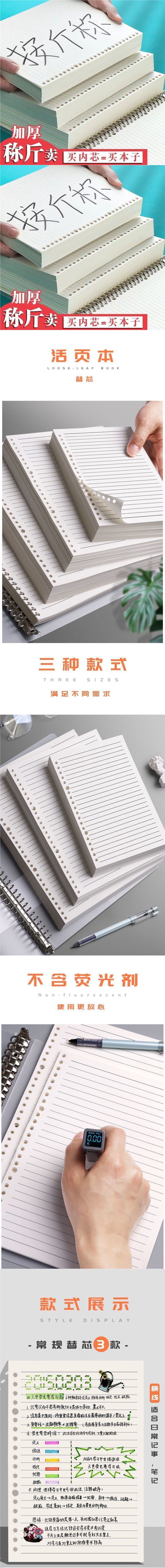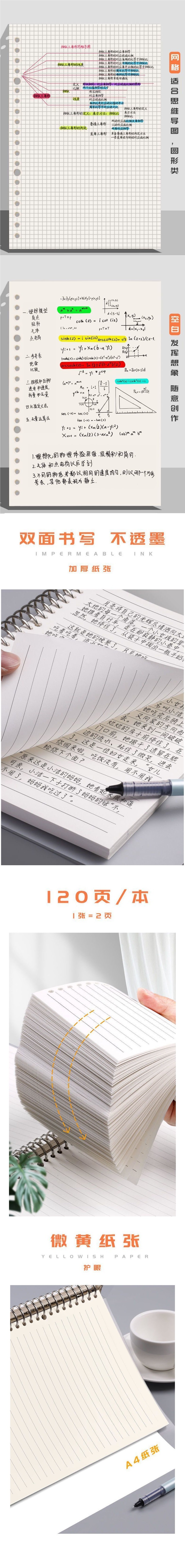 B5活页纸活页笔记本子替芯a5横线网格方格20孔26孔30孔内芯可拆卸