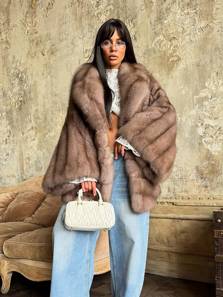 欧米のアマゾンの爆発的な国境を越えたコウモリの袖のコートはミンクの毛のファッションの婦人服の秋冬の新型の上着の女性をまねます。
