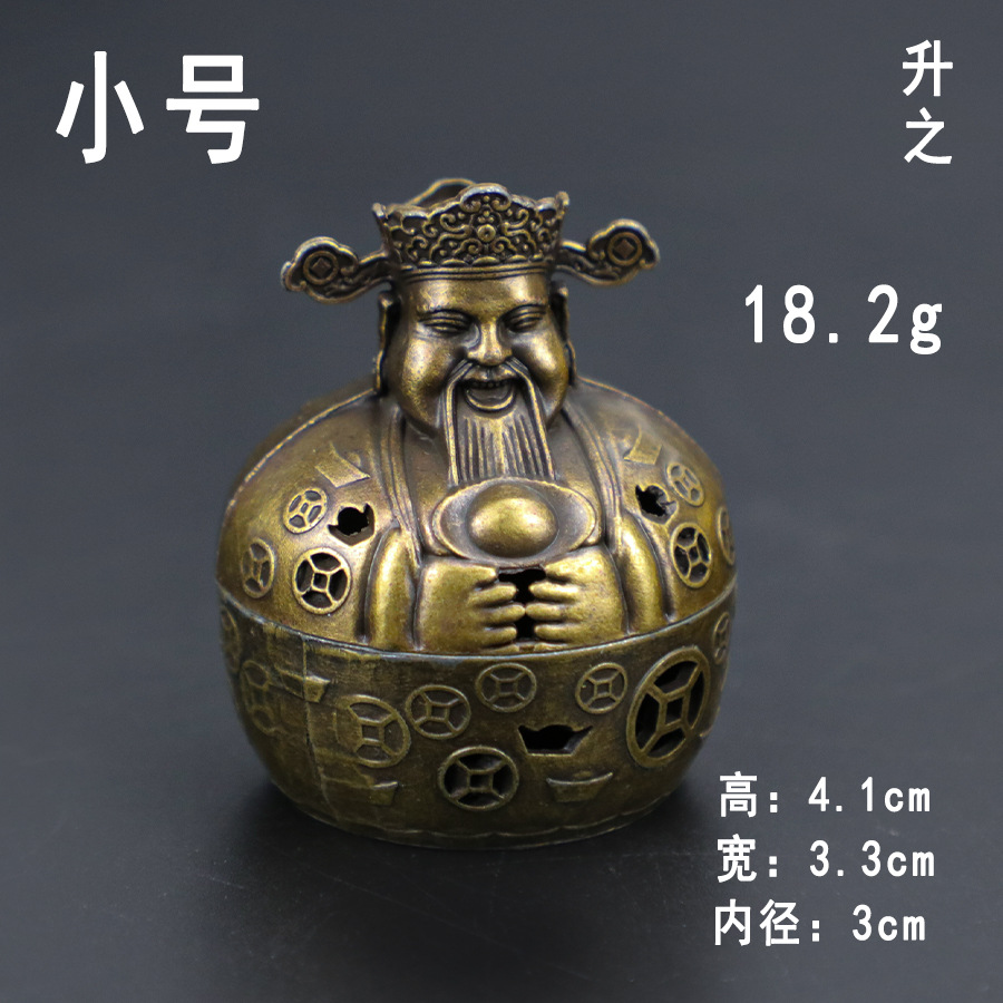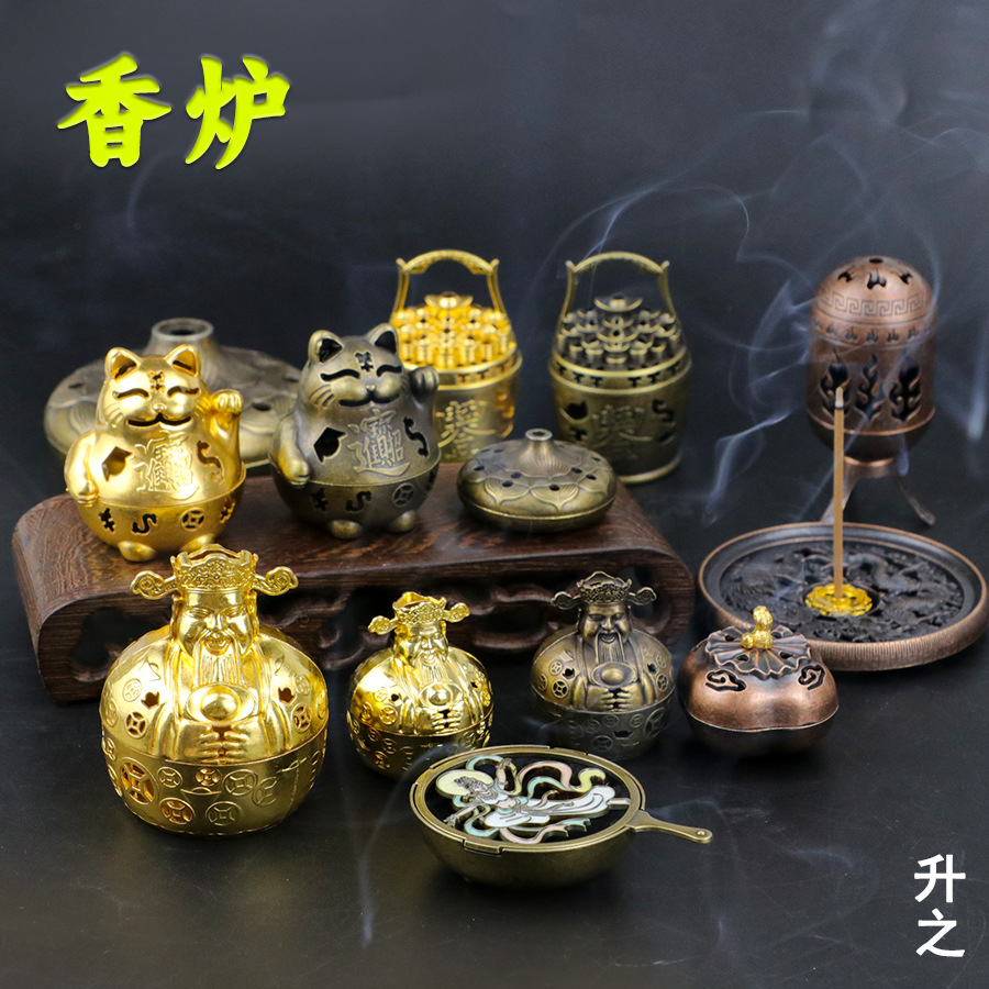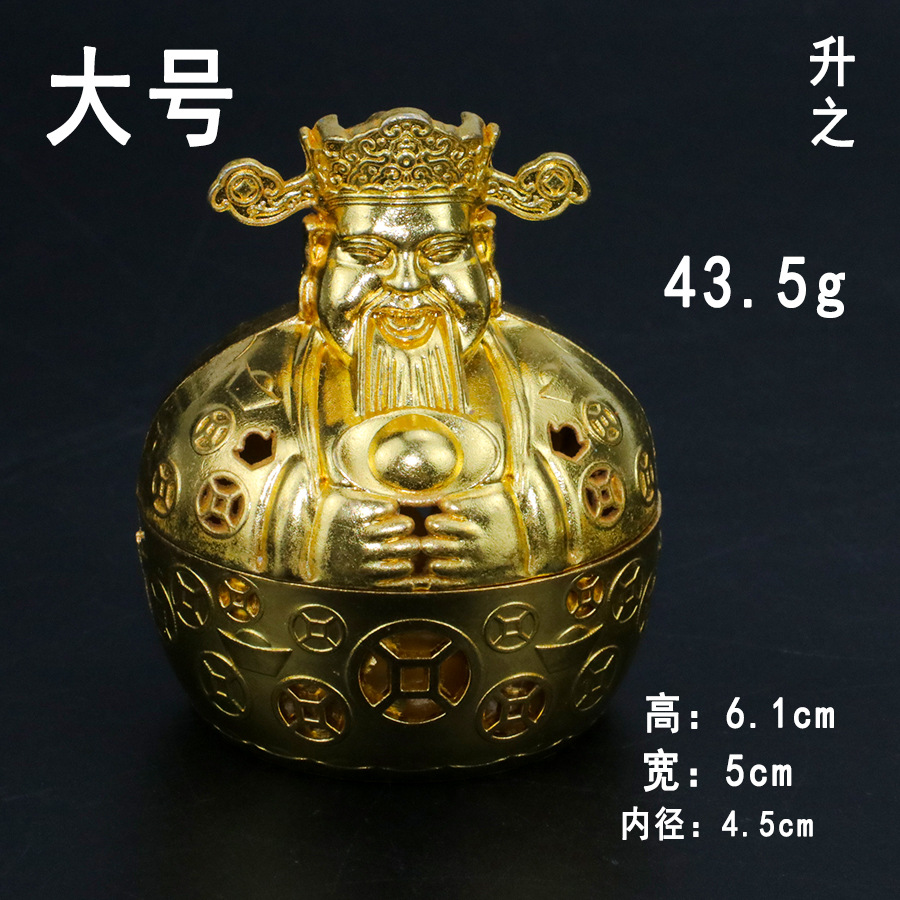 规格 财神爷香炉青铜色—小号,财神爷香炉金色—小号,财神爷香炉金色—大号,敦煌飞天香炉,好事花生香炉—红铜,火把香炉,招财猫香炉—青铜色,招财猫香炉—金色,桶装元宝香炉—青铜,桶装元宝香炉—金色,莲花圆盘—小号,莲花圆盘—大号,青花5孔香盘,镂空龙凤圆香插