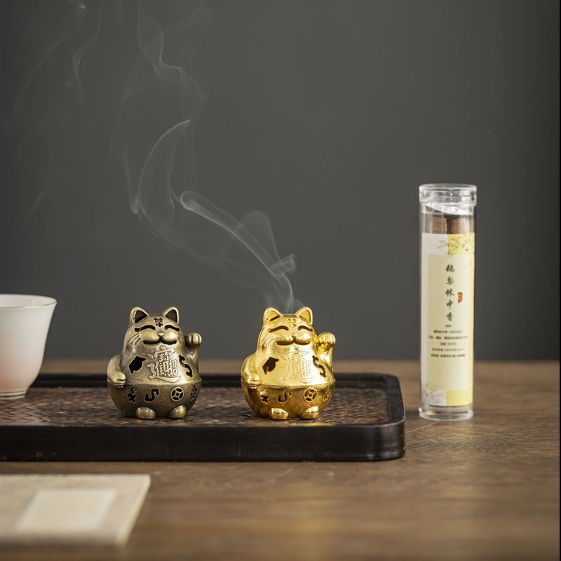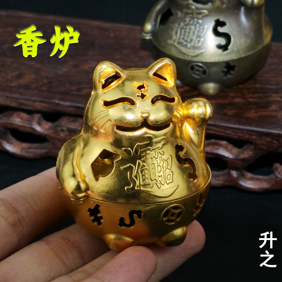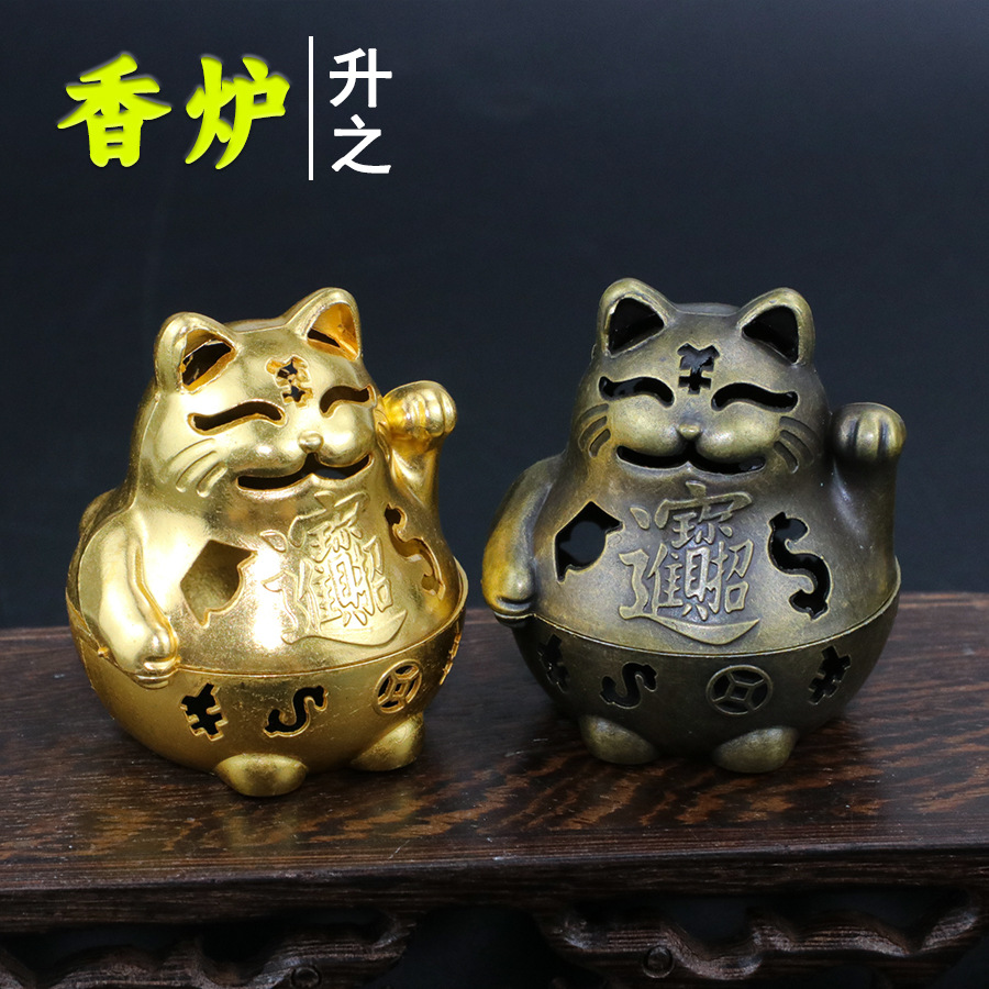 招财猫咪合金盘香炉香插家用香薰炉室内香道线家卧室留香桂花香薰