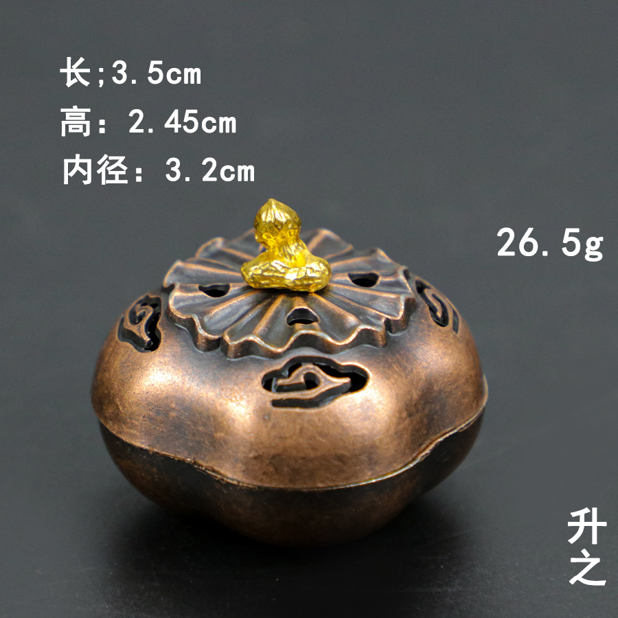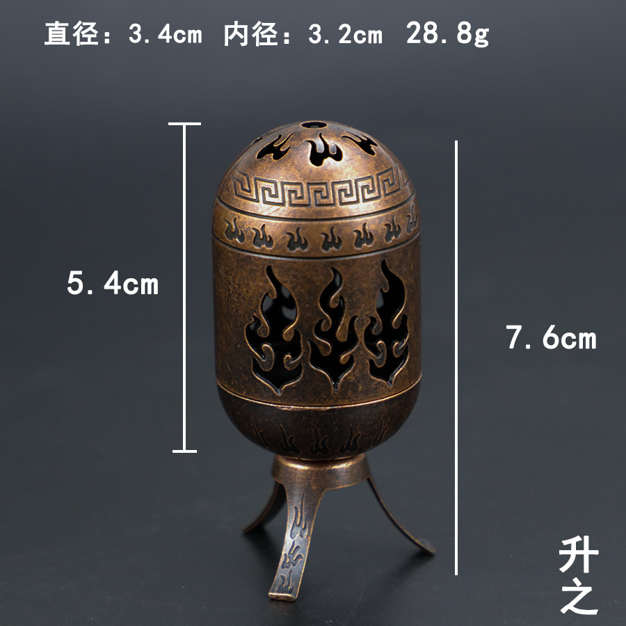 Shengzhi メタルミニ中空蓮華香炉、室内仏教用香炉、レトロなブロンズ百福香炉