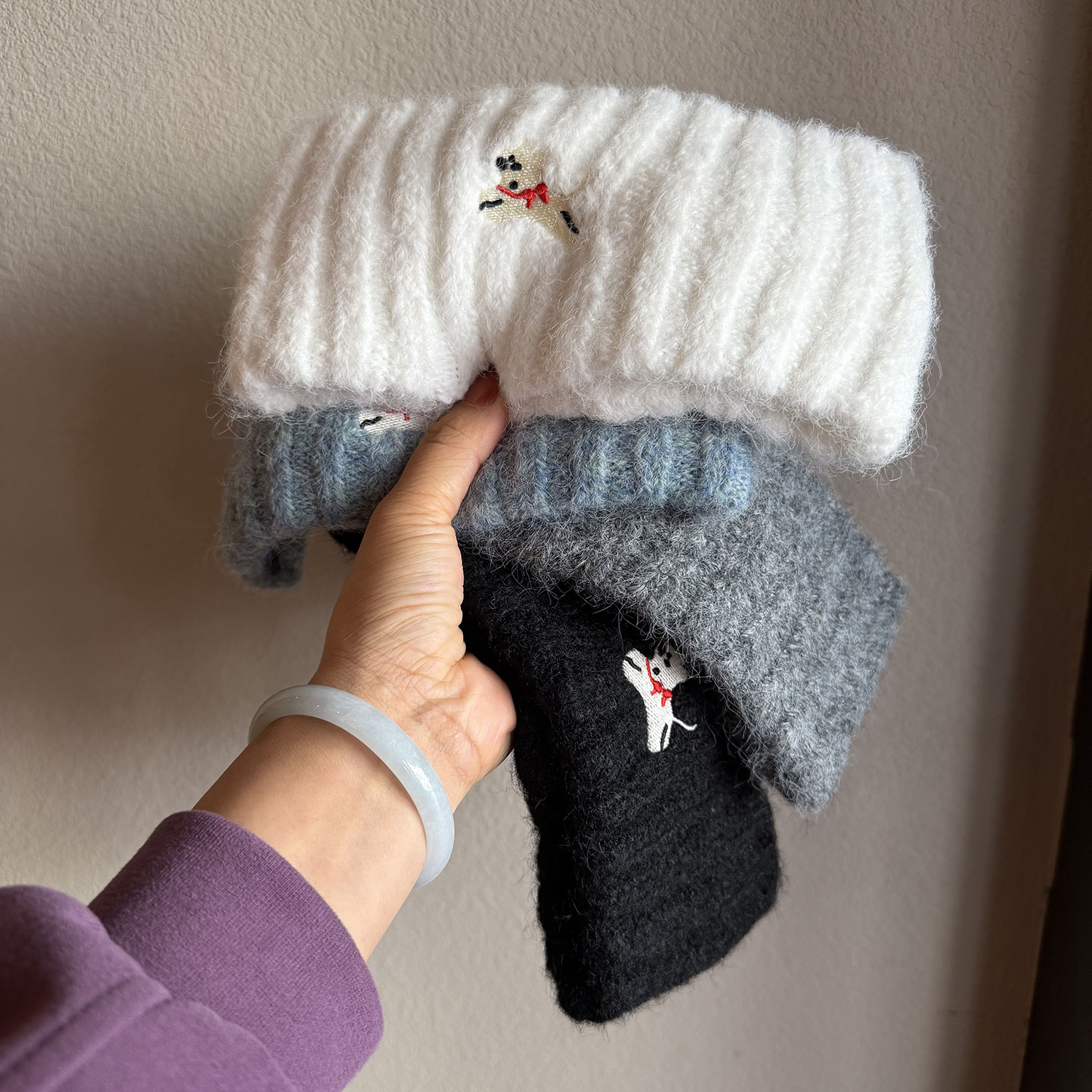 韩国刺绣小狗宽边针织发带女秋冬加厚保暖护耳时尚百搭羊毛头带潮