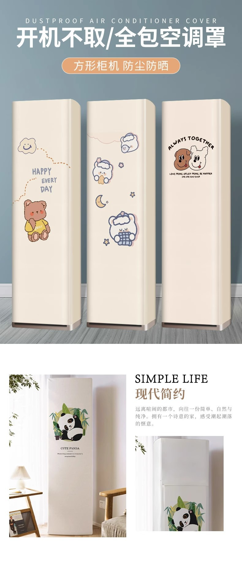 ミルクティー系縦型エアコンカバー角型エアコン防塵カバー全包カバー格力美方盤エアコンカバー