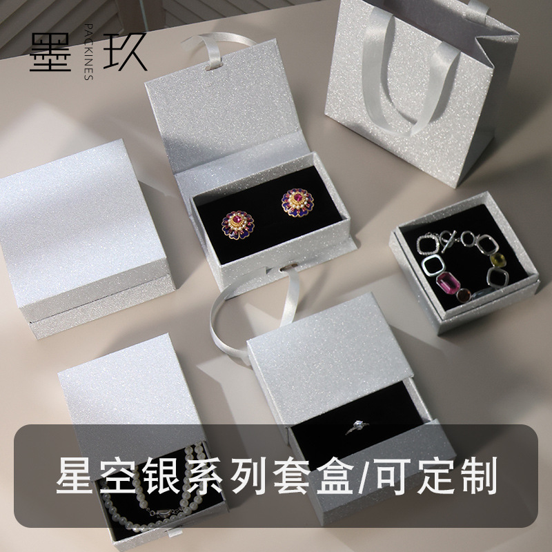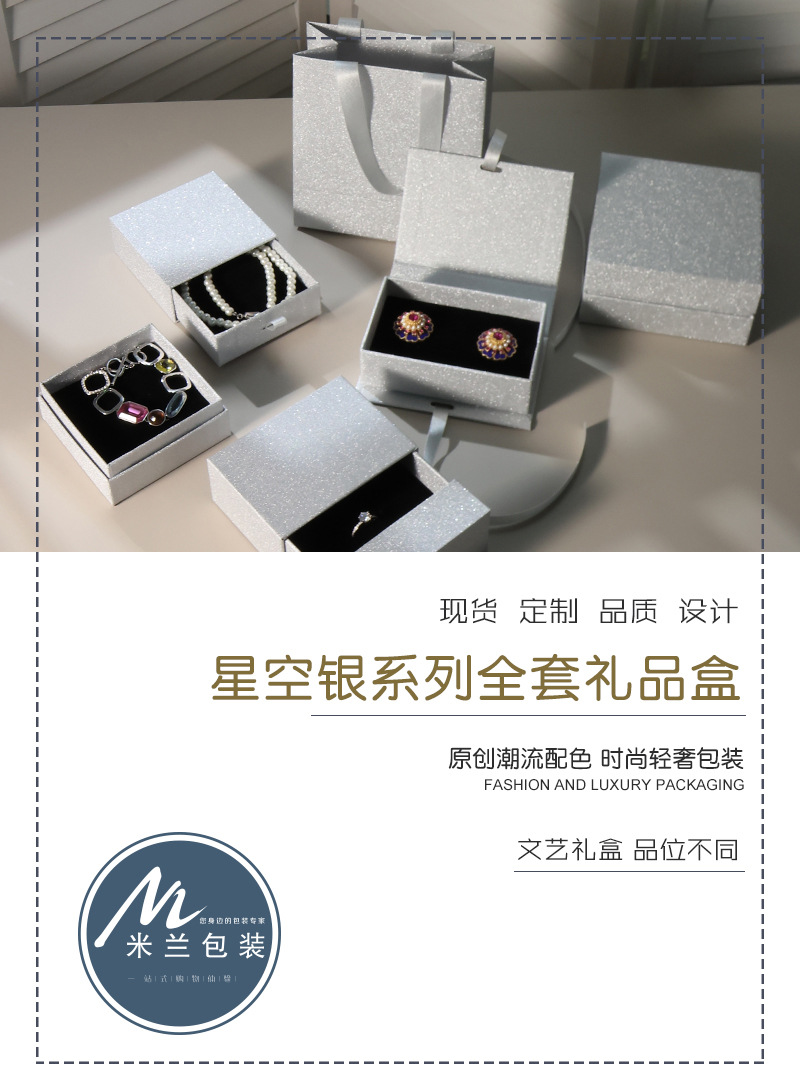 再生星空银饰品包装盒天地盖戒指盒项链抽屉盒珠宝首饰盒工厂批发