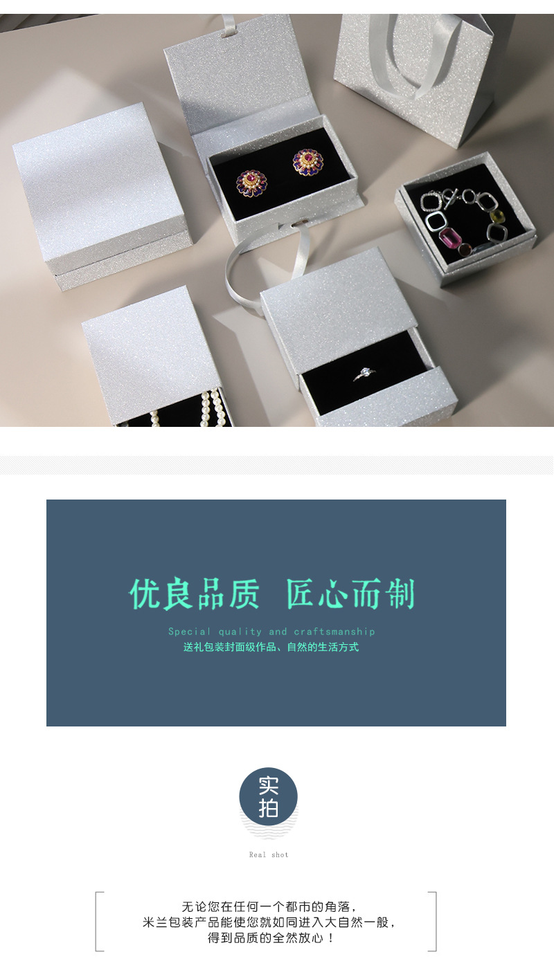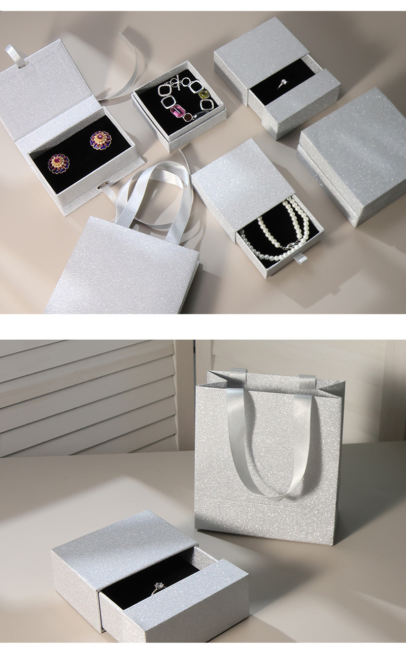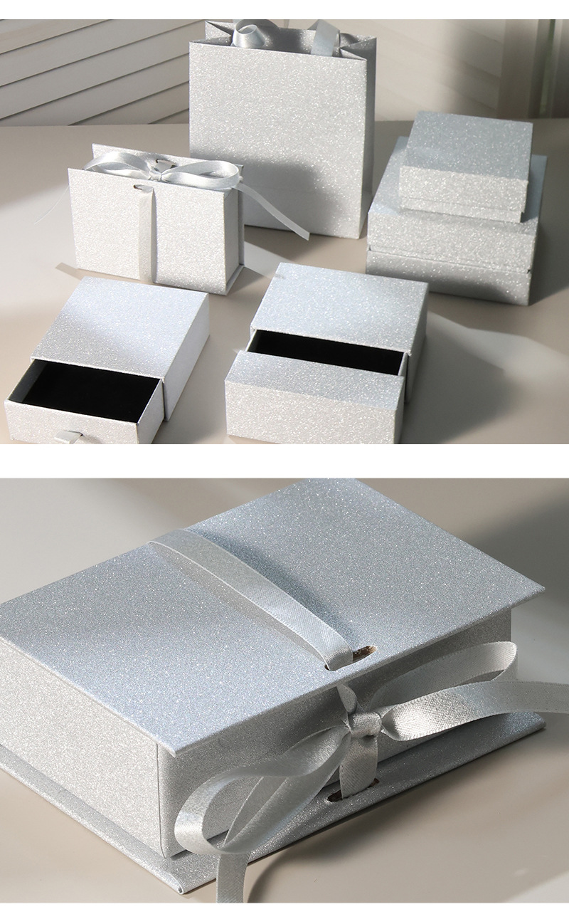 闪亮银色纸张小红书热销首饰品包装盒现货可定戒指手链串礼品盒