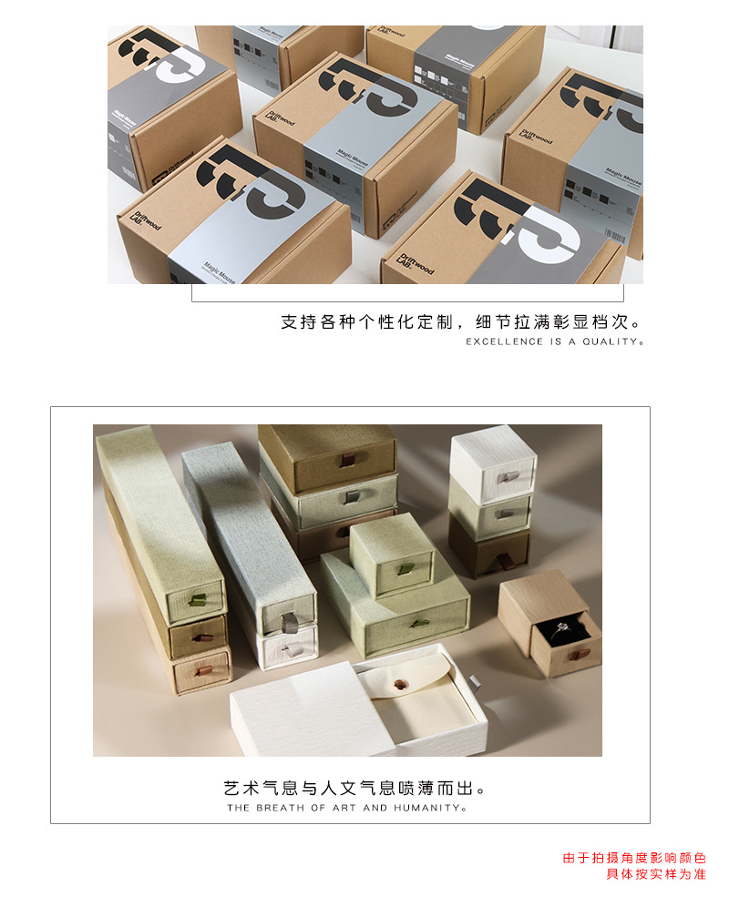 热销云棕色轻奢通用硬纸板抽屉珠宝首饰盒银饰品项链戒指包装盒