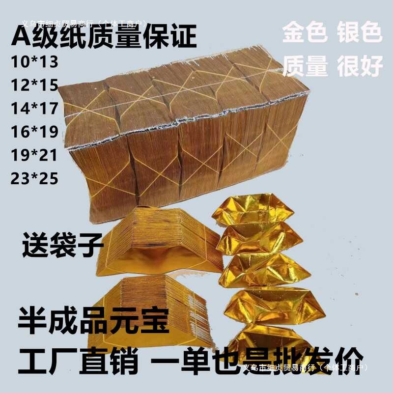 金元宝半製品銀元宝手作り折り紙金紙卸売り錫箔紙厚い角切り半製品元宝寸