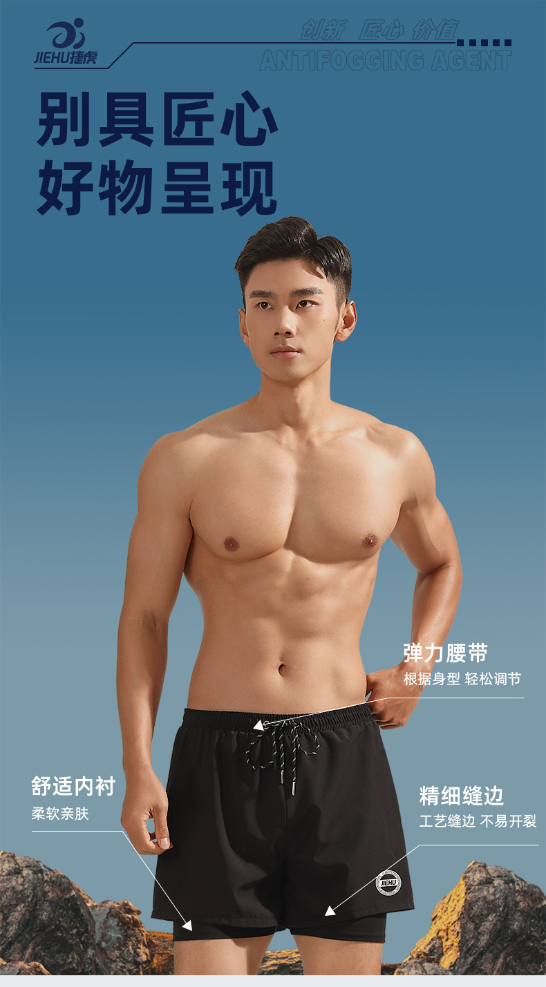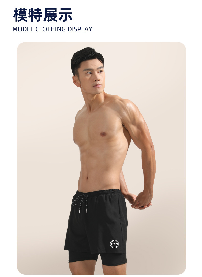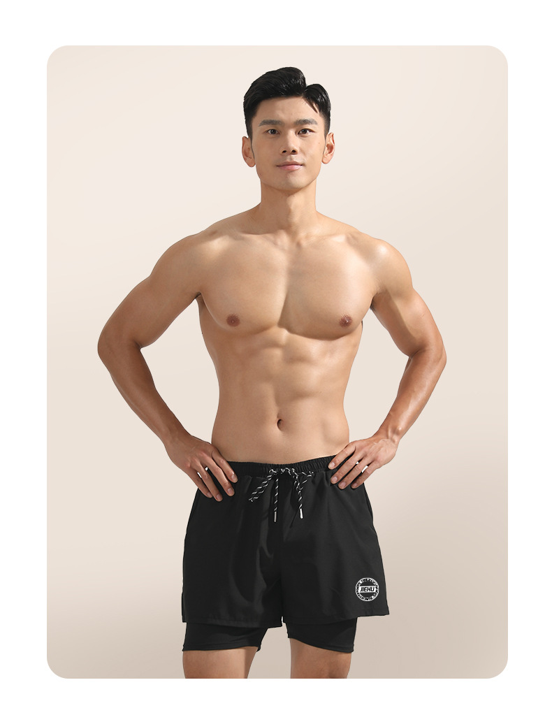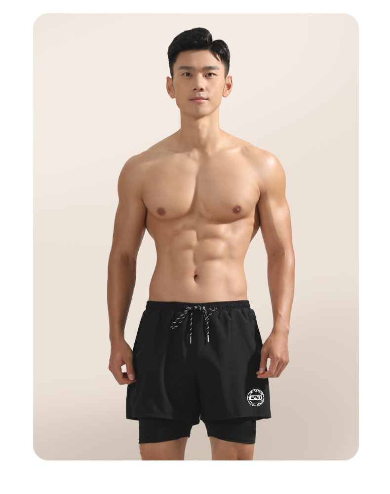 水泳パンツ男性水泳パンツ速乾二重水泳パンツ気まずい水泳スーツ男性六点セット平角水泳パンツビーチパンツ