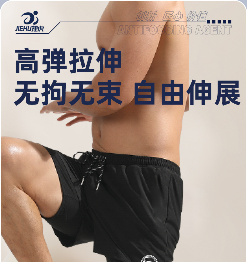 メンズ二層水泳パンツ、速乾性、ゆったり、恥ずかしくない水泳パンツ、スポーツフィットネスランニングショーツ、ビーチサーフィンホットスタイル