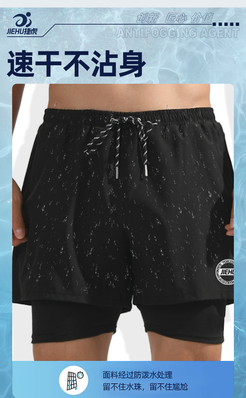 泳裤男士沙滩裤成人双层五分款短裤印花速干防尴尬休闲漂流裤批发