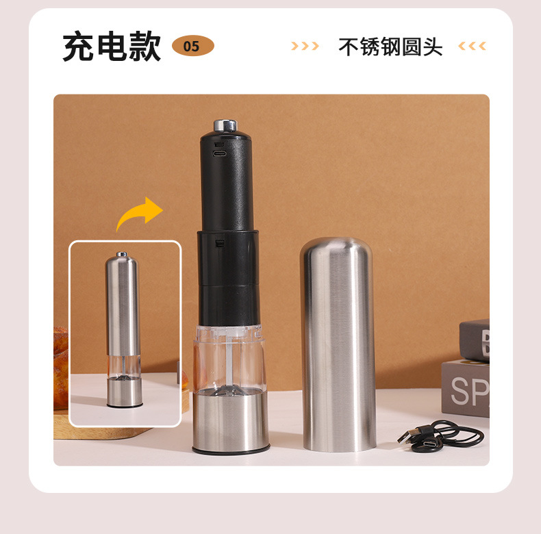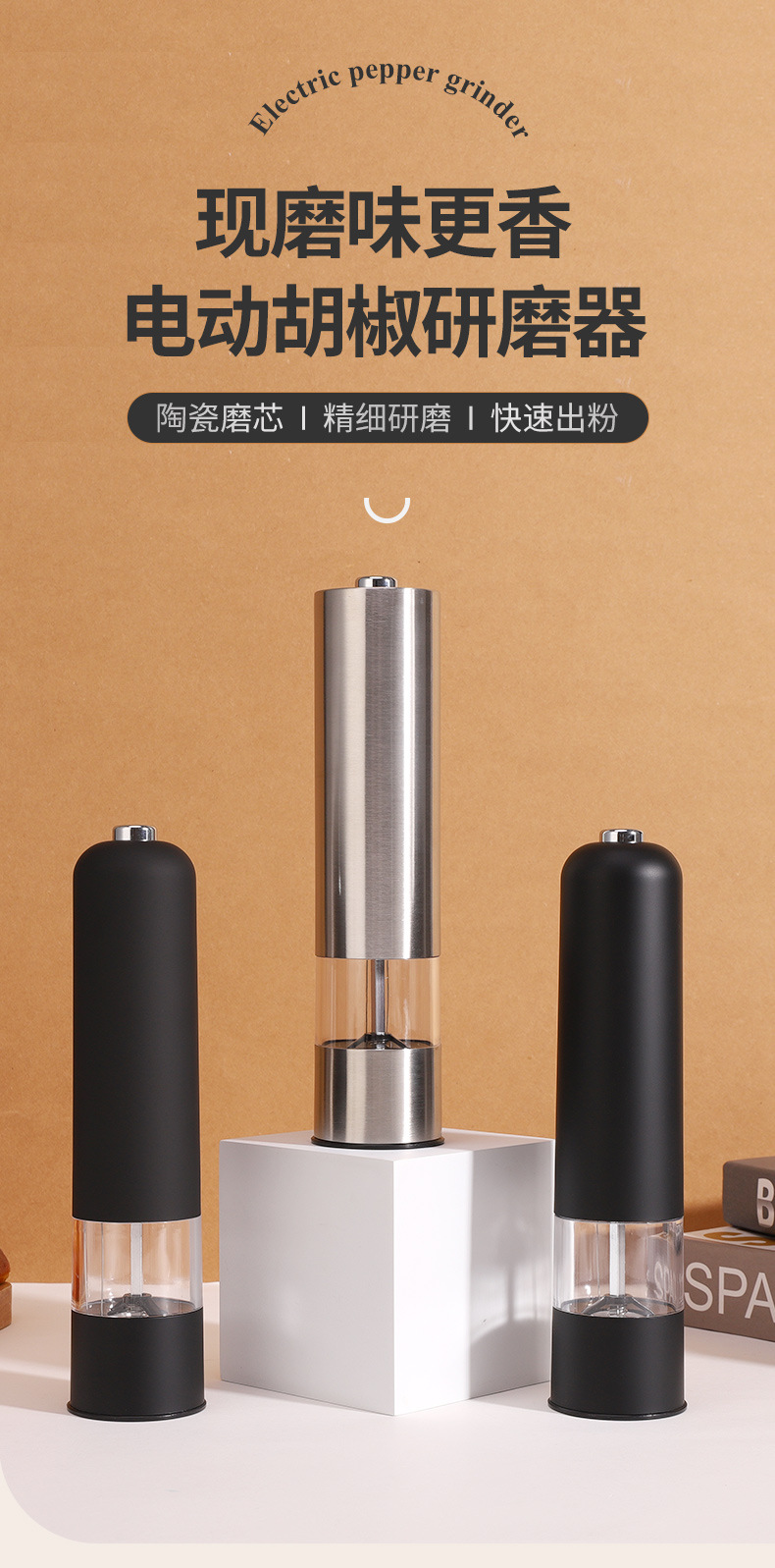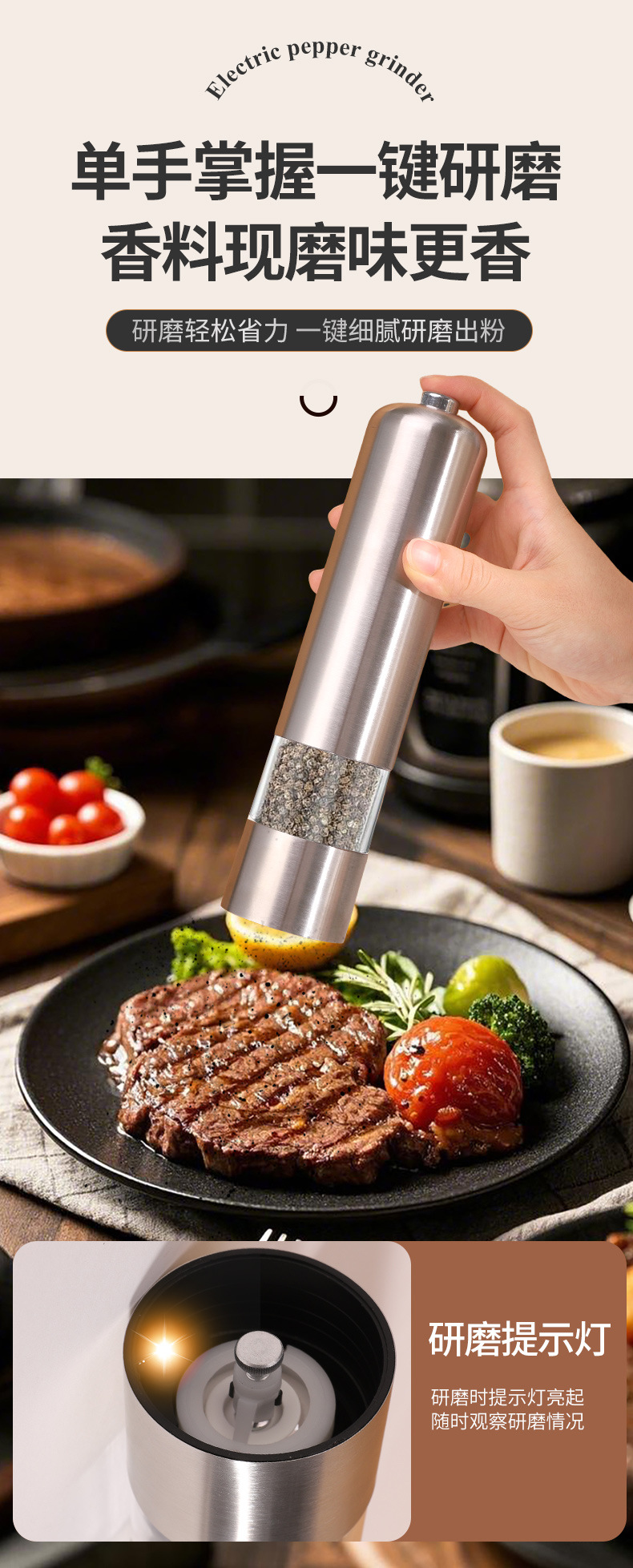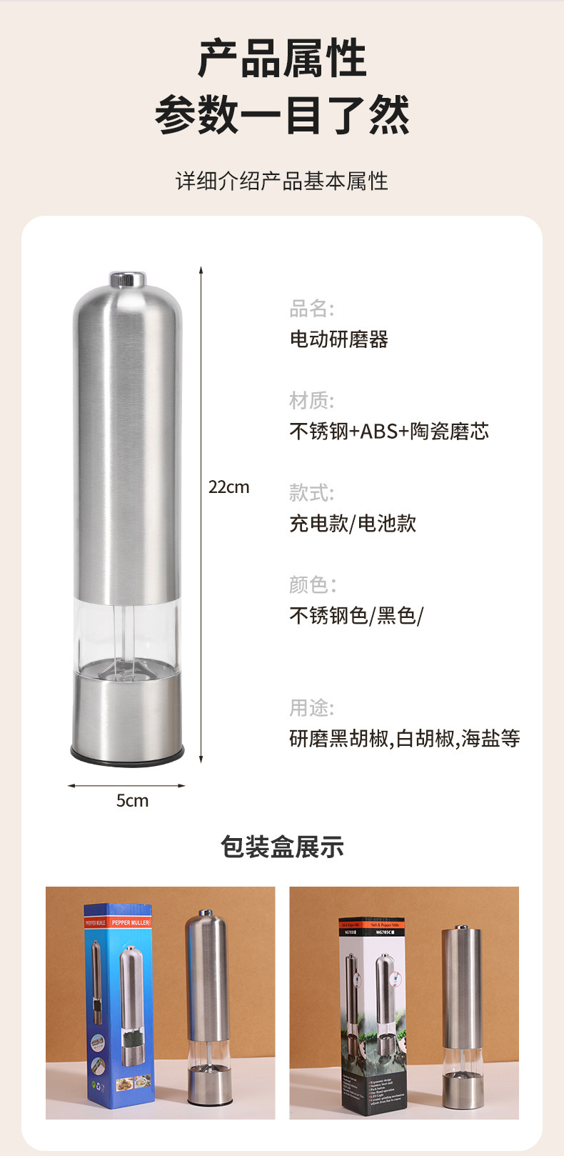 厨房电动不锈钢胡椒研磨器电动小型研磨瓶调料罐黑胡椒研磨器批发