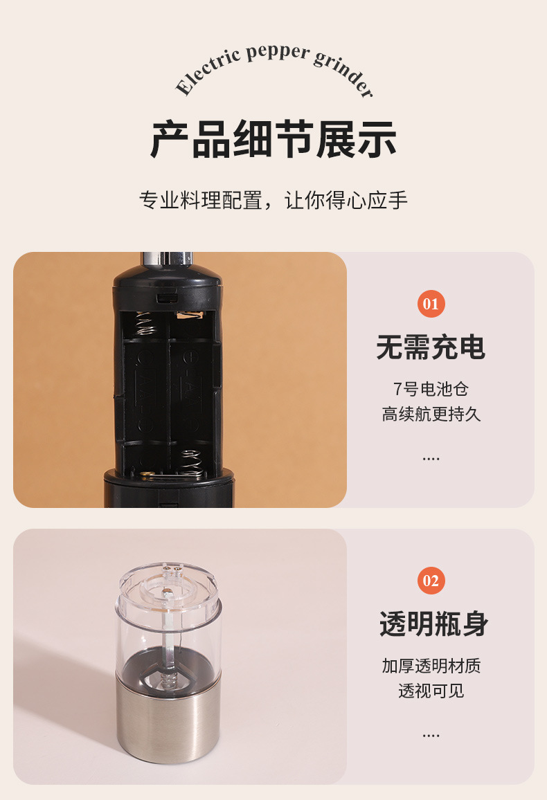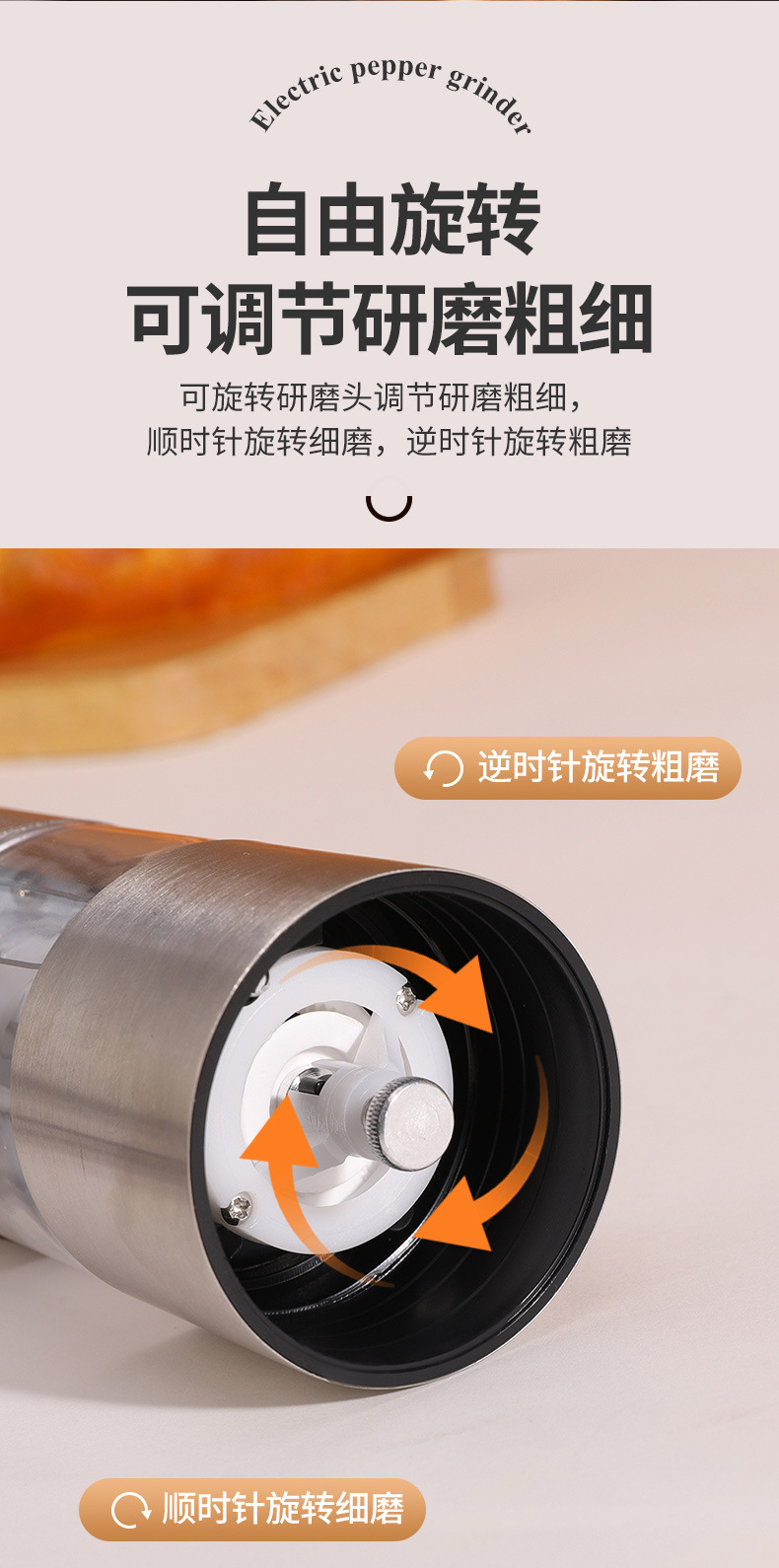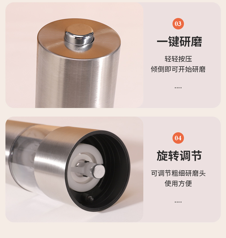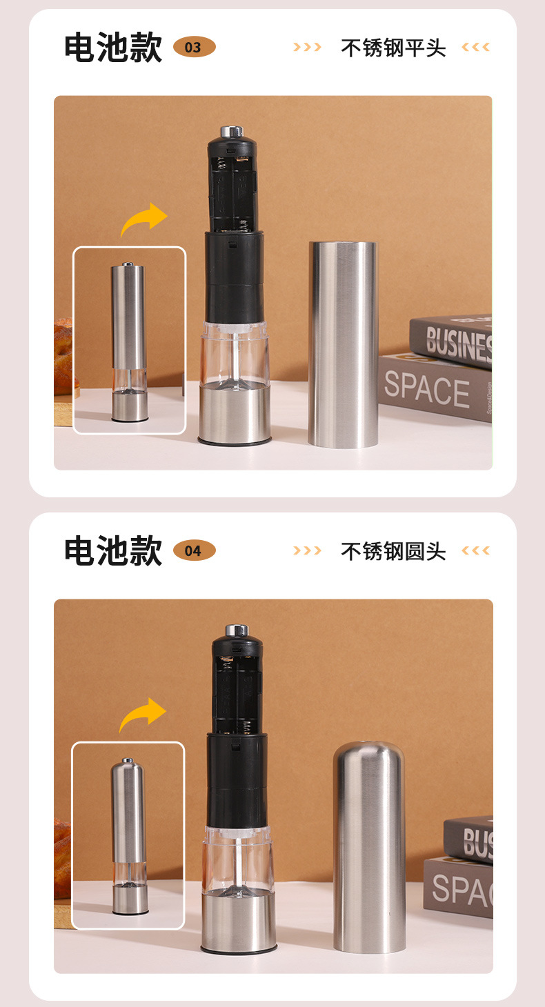 厨房电动不锈钢胡椒研磨器电动小型研磨瓶调料罐黑胡椒研磨器批发
