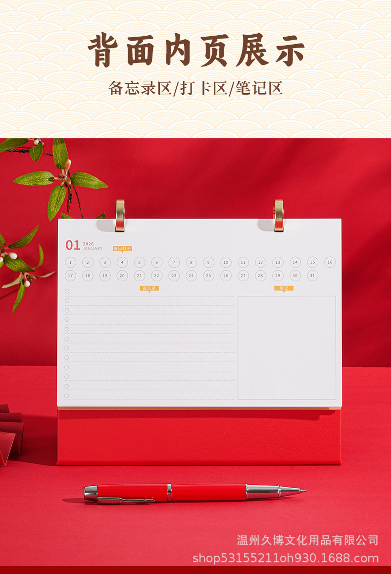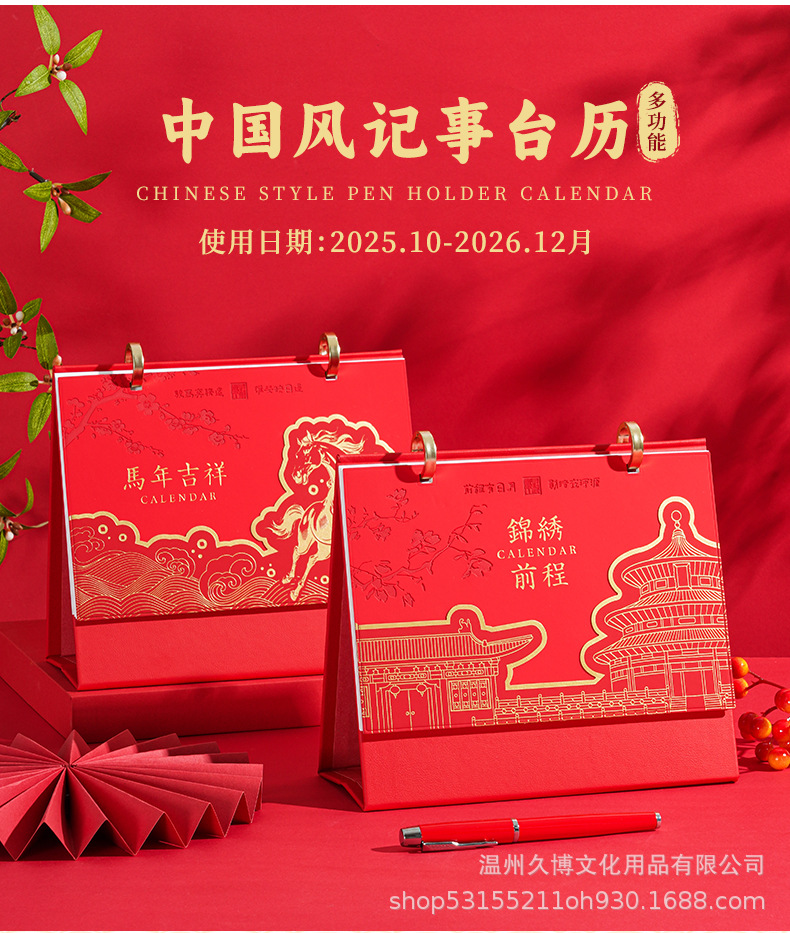 2026年台历定制礼盒套装皮质中国风日历新款实用办公商务伴手礼