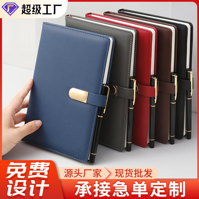現物b 5縦紋pu皮面磁気ボタン事務会議メモ帳a 5ビジネスノートセット現物卸売り