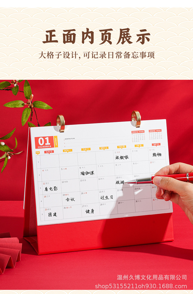 2026年卓上カレンダー、ビジネス向け、祝賀、新年、メモ帳、卓上飾り、馬年ギフトボックス、プランニング月間カレンダー、カスタムメイド