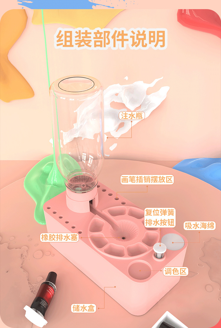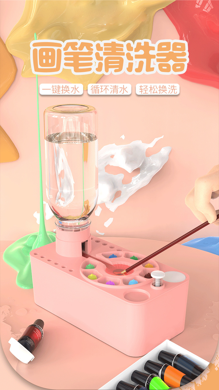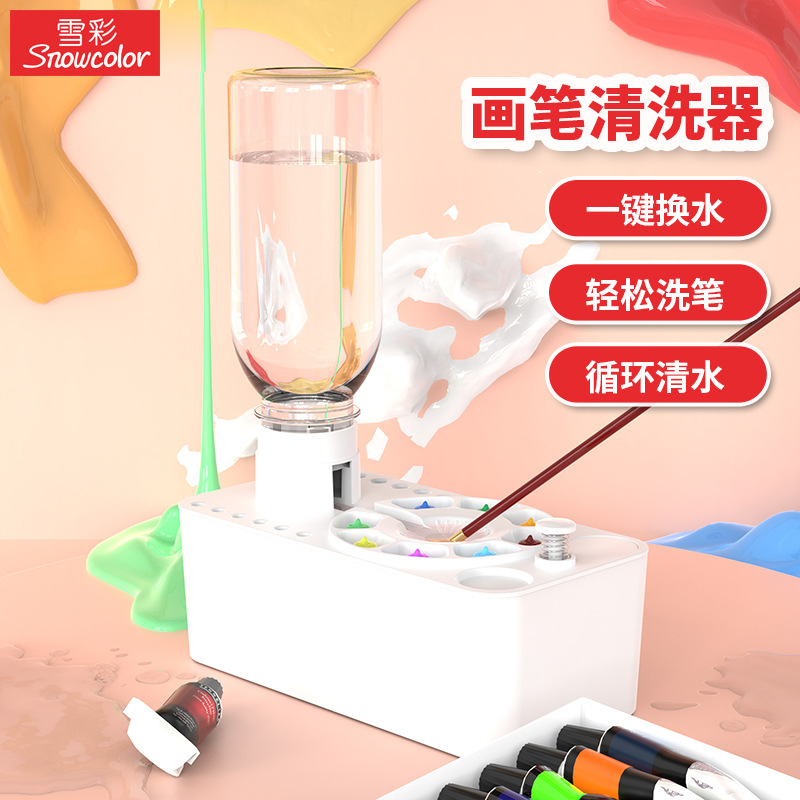 画笔洗笔器按压自动循环换水颜料洗笔神器毛笔画笔清洗器洗笔桶