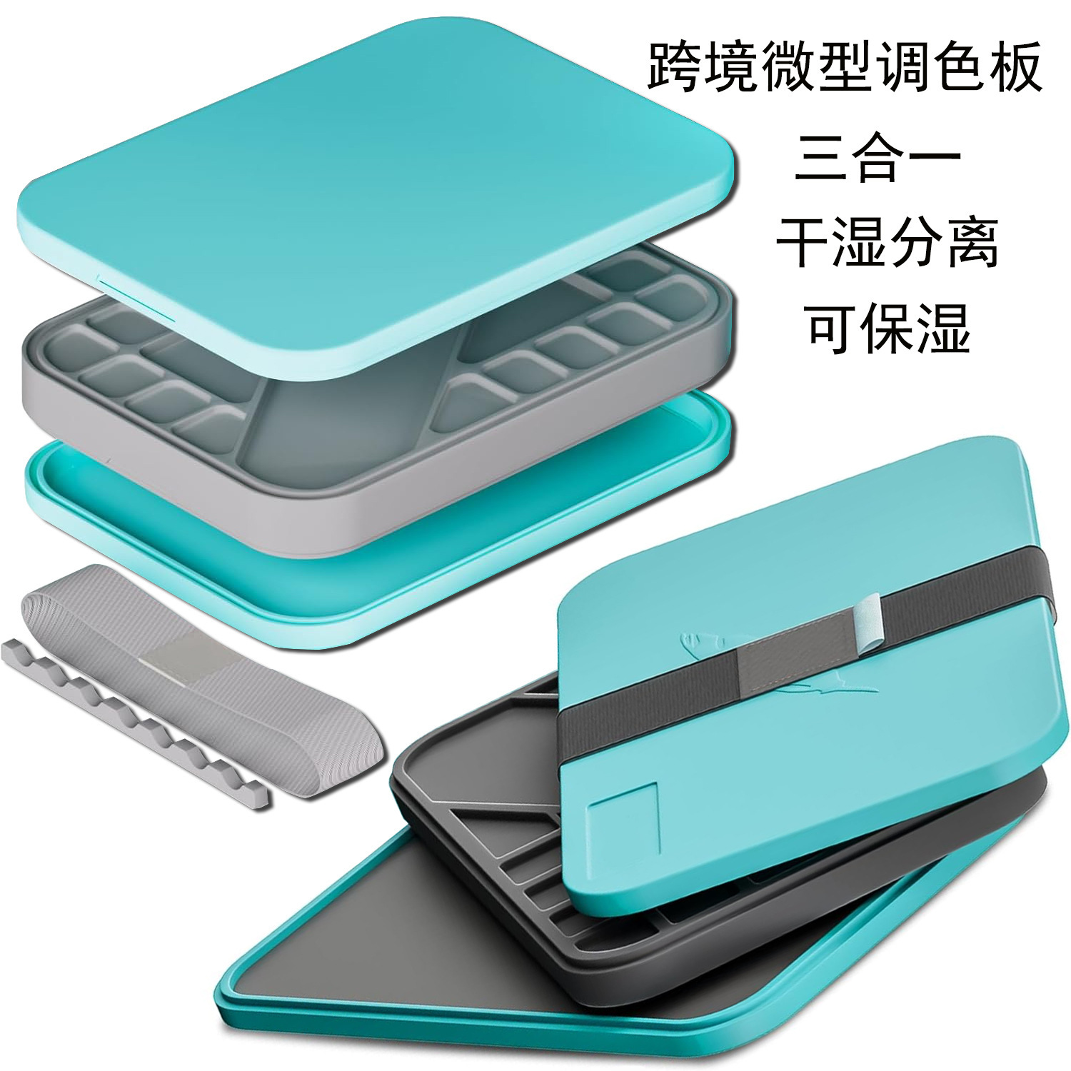 跨境艺术家湿盒调色板微型托盘式绘画调色盘户外旅游颜料板画板