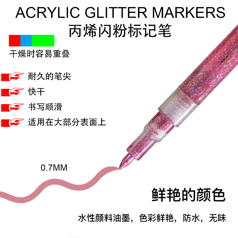 スポット DIY 落書きペンカラーアクリルマーカーガラス塗装速乾性防水蛍光色グリッターマーカーペン