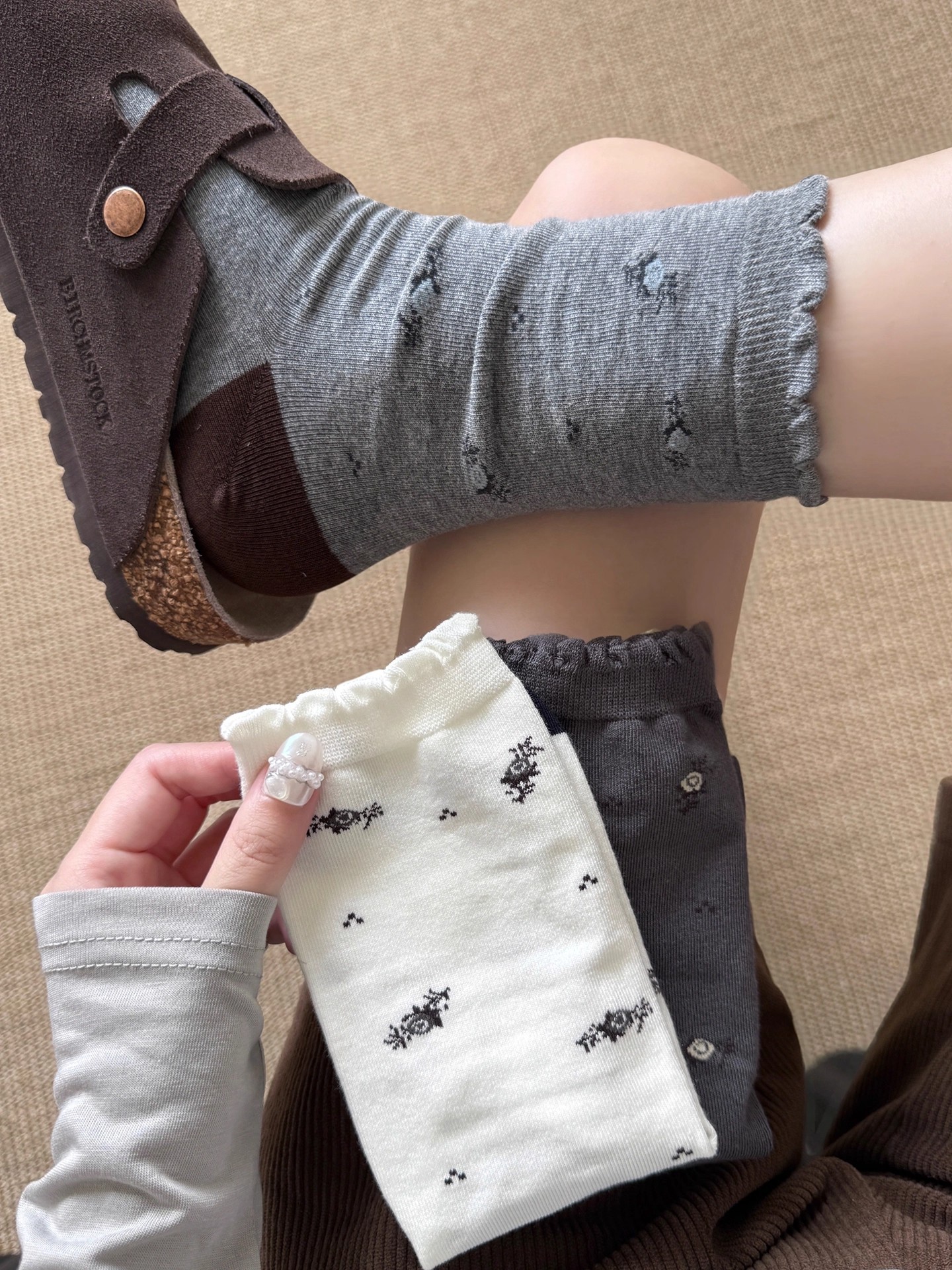秋日新品温柔碎花袜miu系女袜棉袜日杂慵懒无骨袜搭勃肯鞋堆堆袜