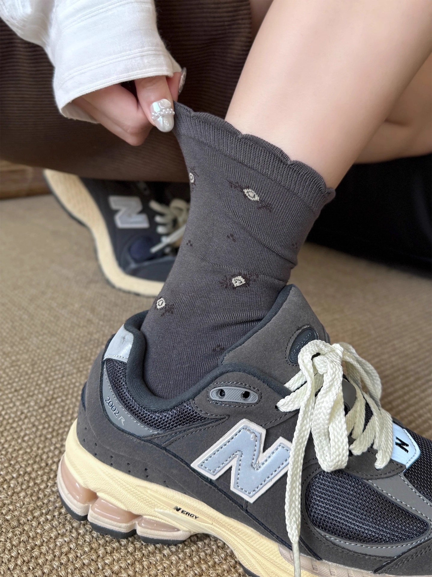 良い韓国の靴下韓国insはブロガーの刺繍の蝶結びの靴下を着ています。