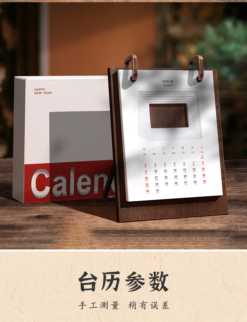 2026商务台历定制logo木质复古日历简约创意台座定做企业宣传广告