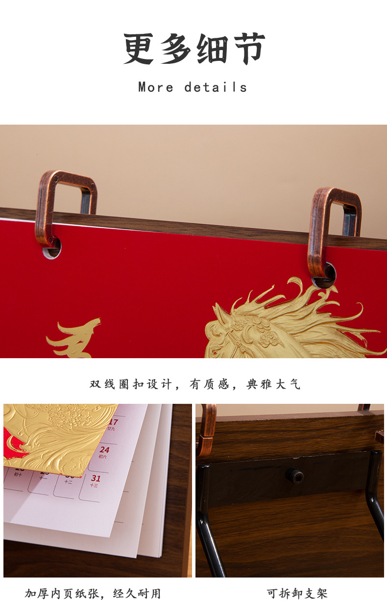 2026年馬年祝福カレンダー卸売エンボス加工ホットスタンピングタグカレンダープリントロゴ広告デザイン祝福カレンダー
