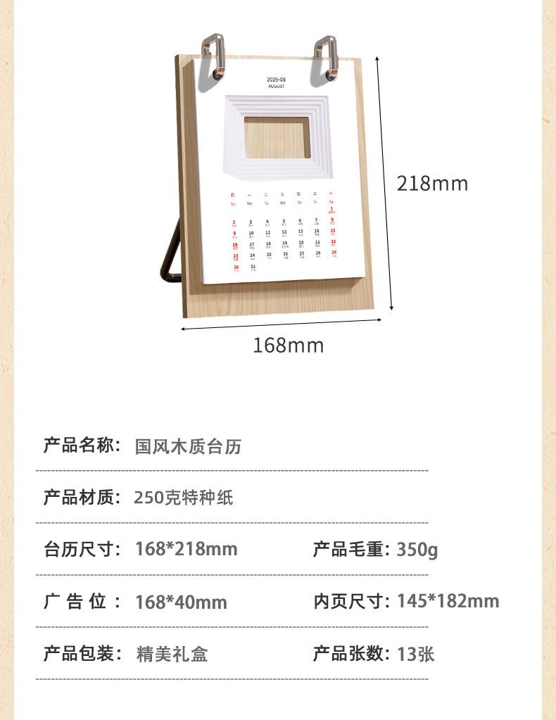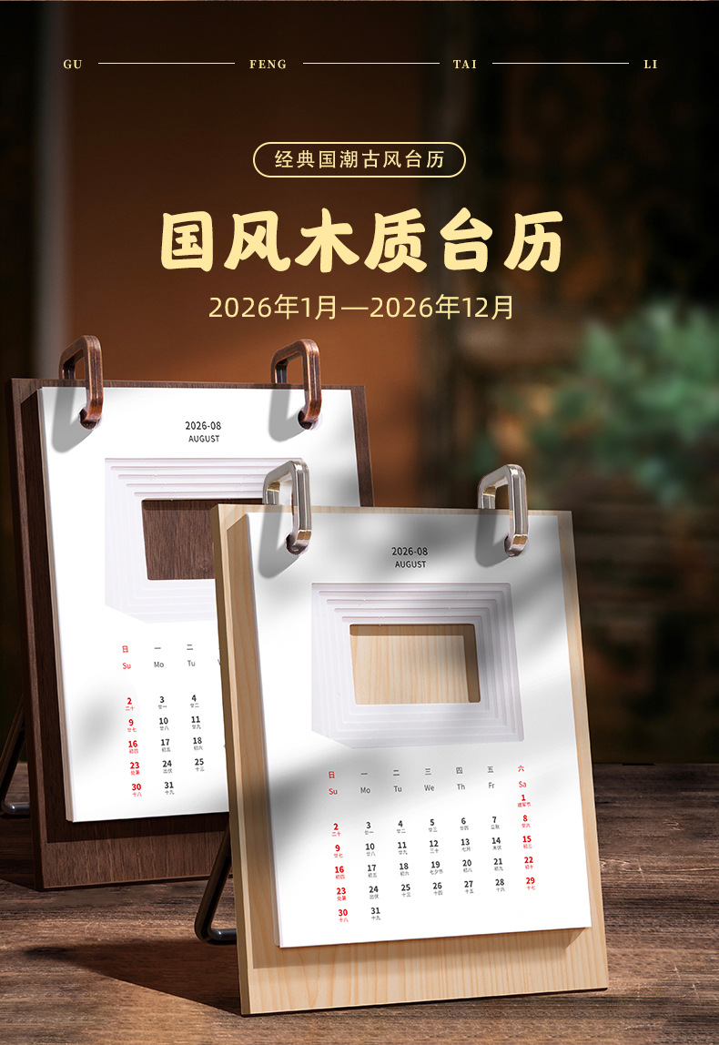 台历定制2026年木架日历高档桌面摆件月历企业定做专版商务伴手礼