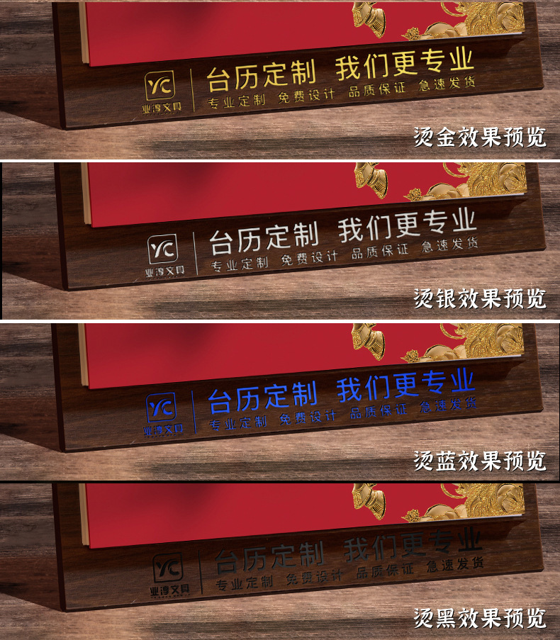 规格 顺风顺水/深木竖款台历,诸事皆顺/浅木竖款台历,好柿发生/浅木竖款台历,马年大吉/浅木横款台历,金马贺岁/深木横款台历,吉祥马年/浅木横款台历