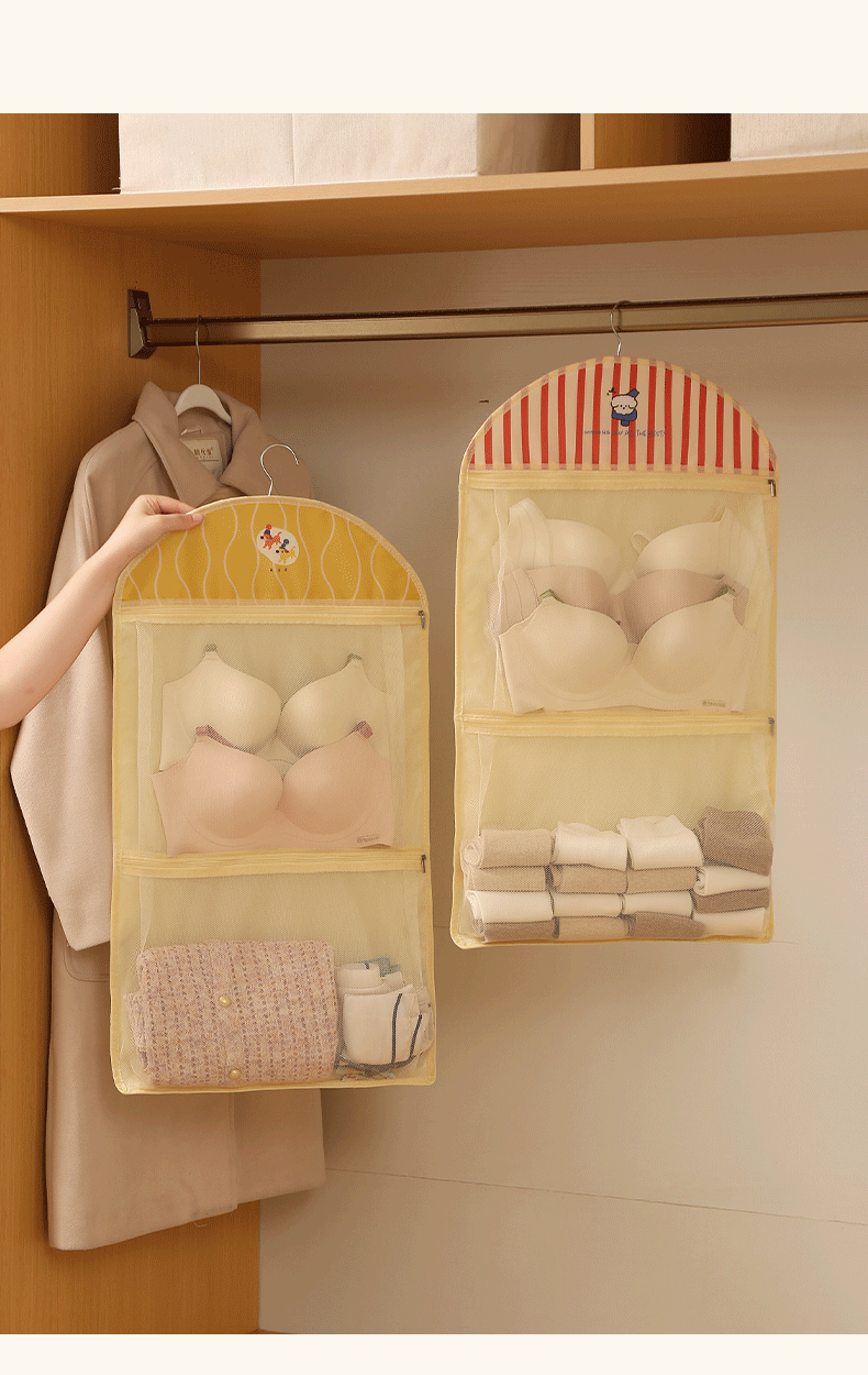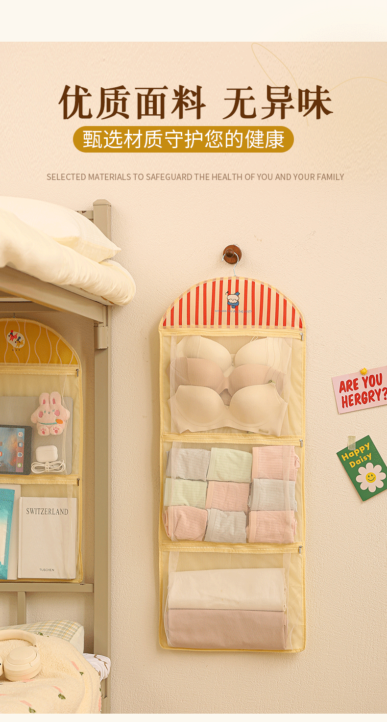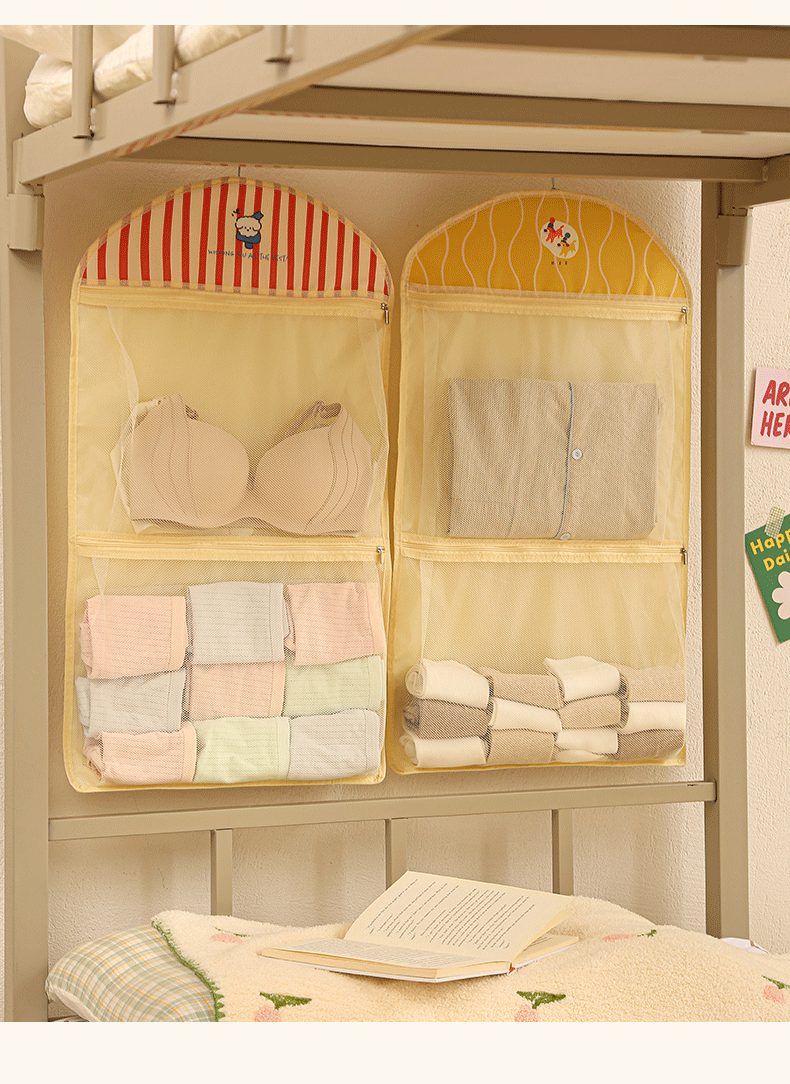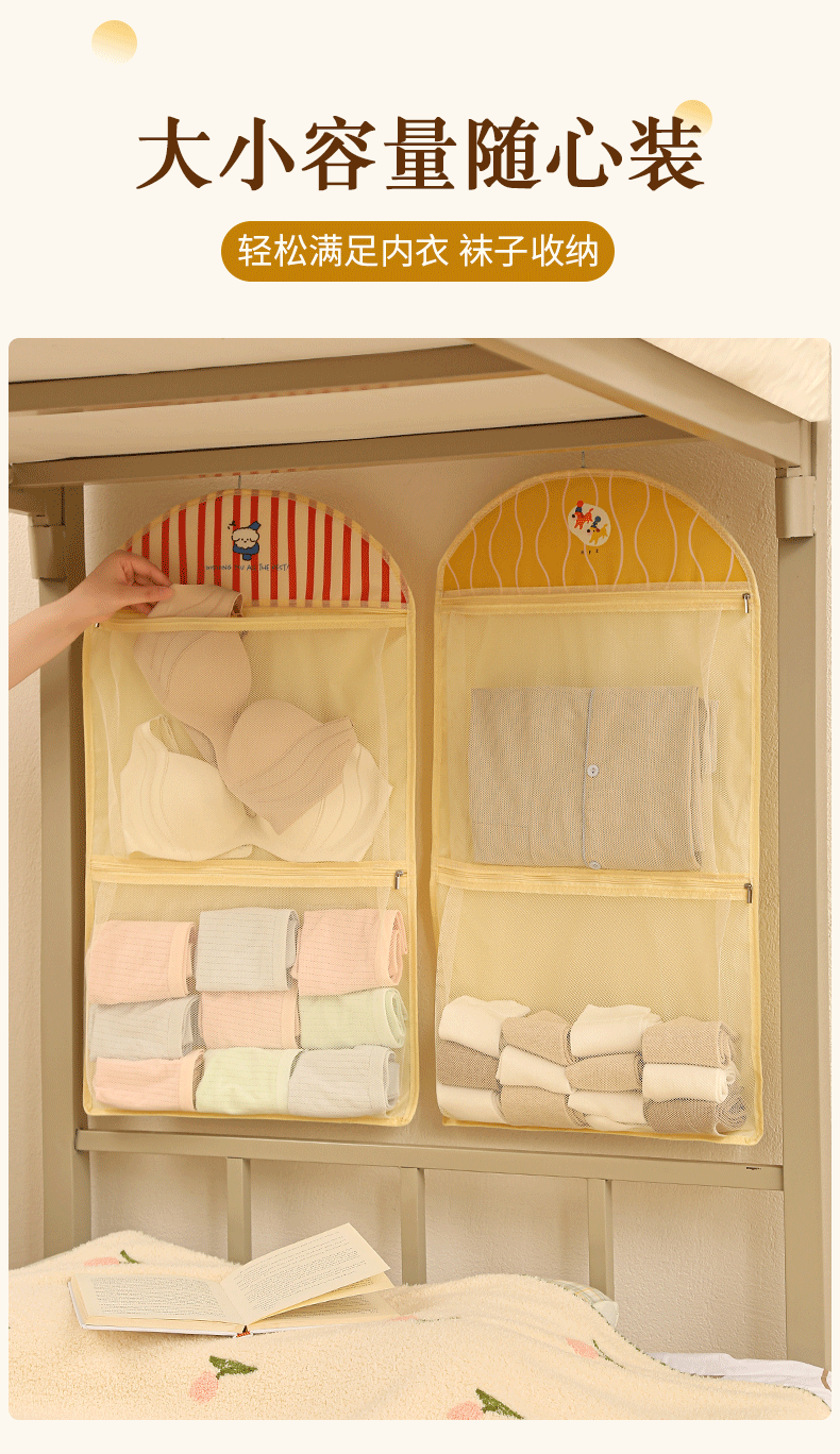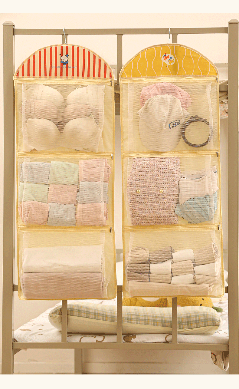 卡通宿舍挂袋多层分区衣柜挂式内衣裤收纳袋网纱透气可视储物挂袋