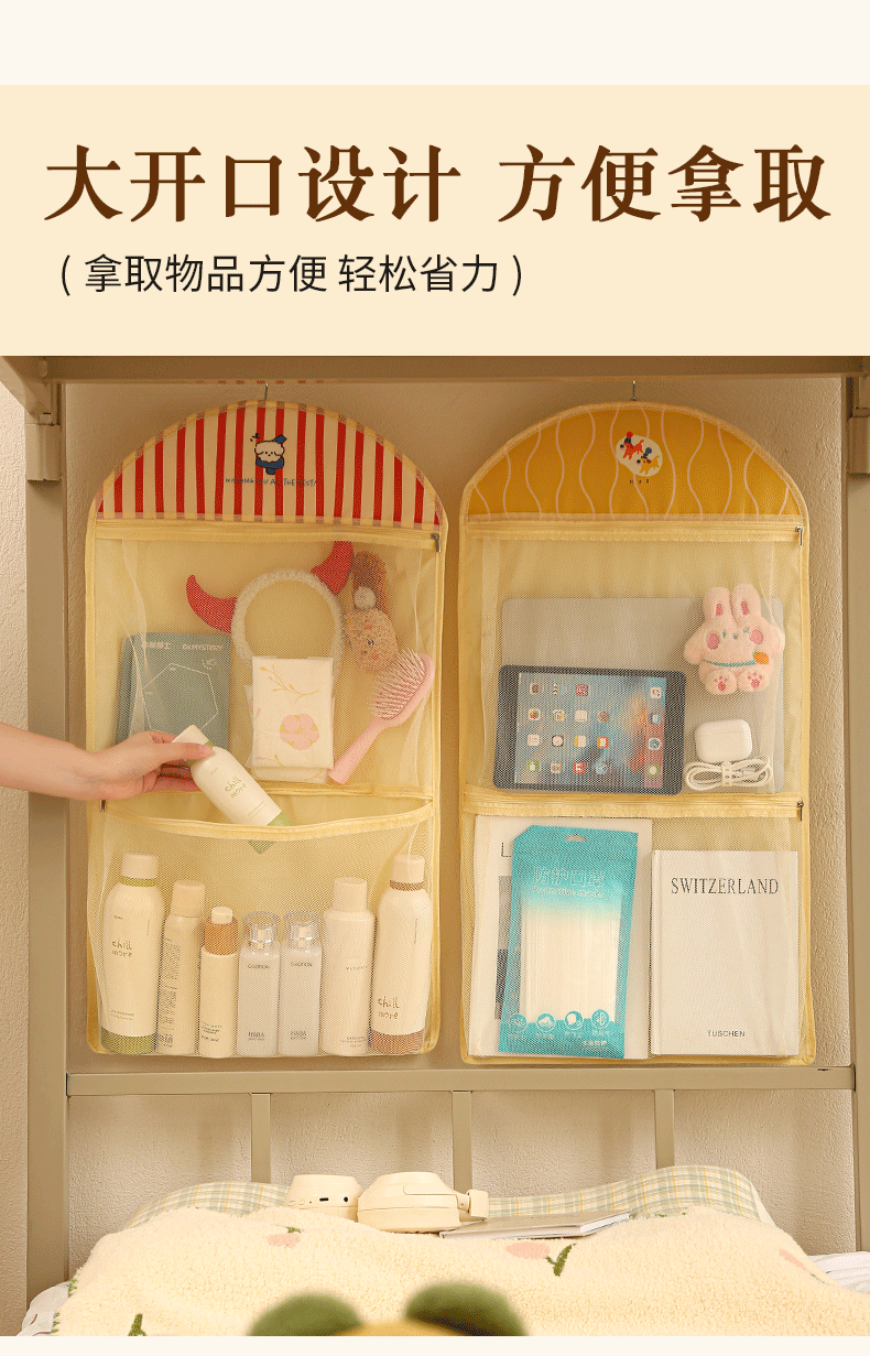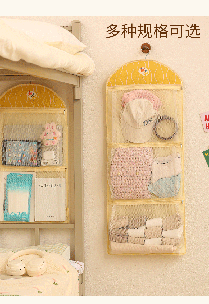 新款储物挂袋可折叠多层卡通车载挂收纳袋多功能宿舍杂物收纳挂袋
