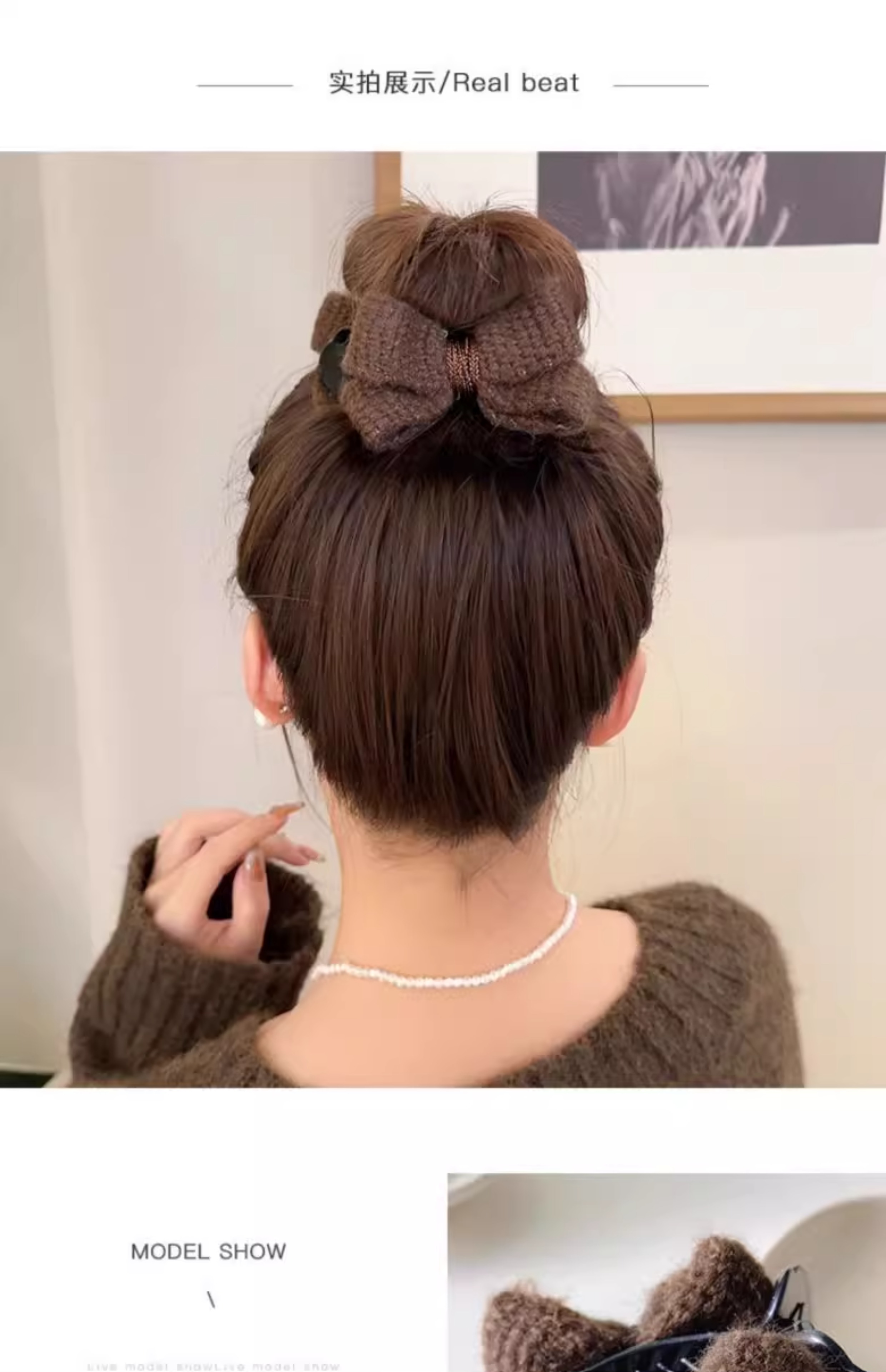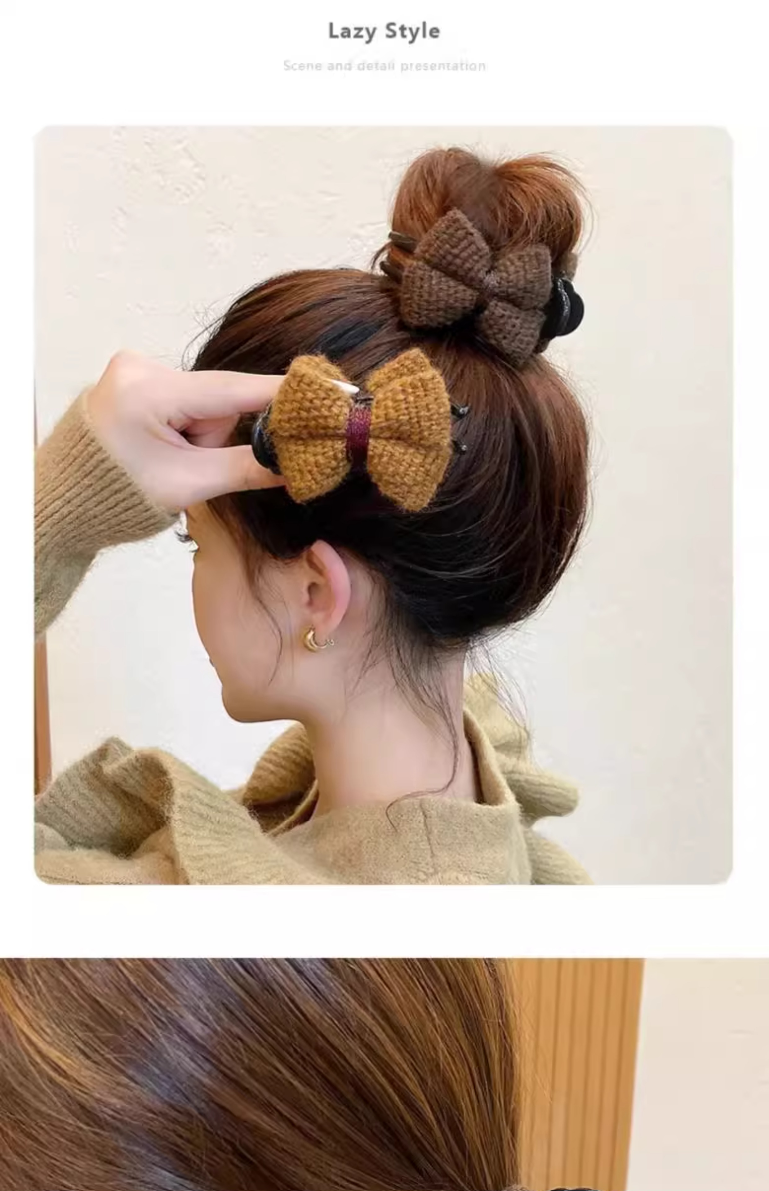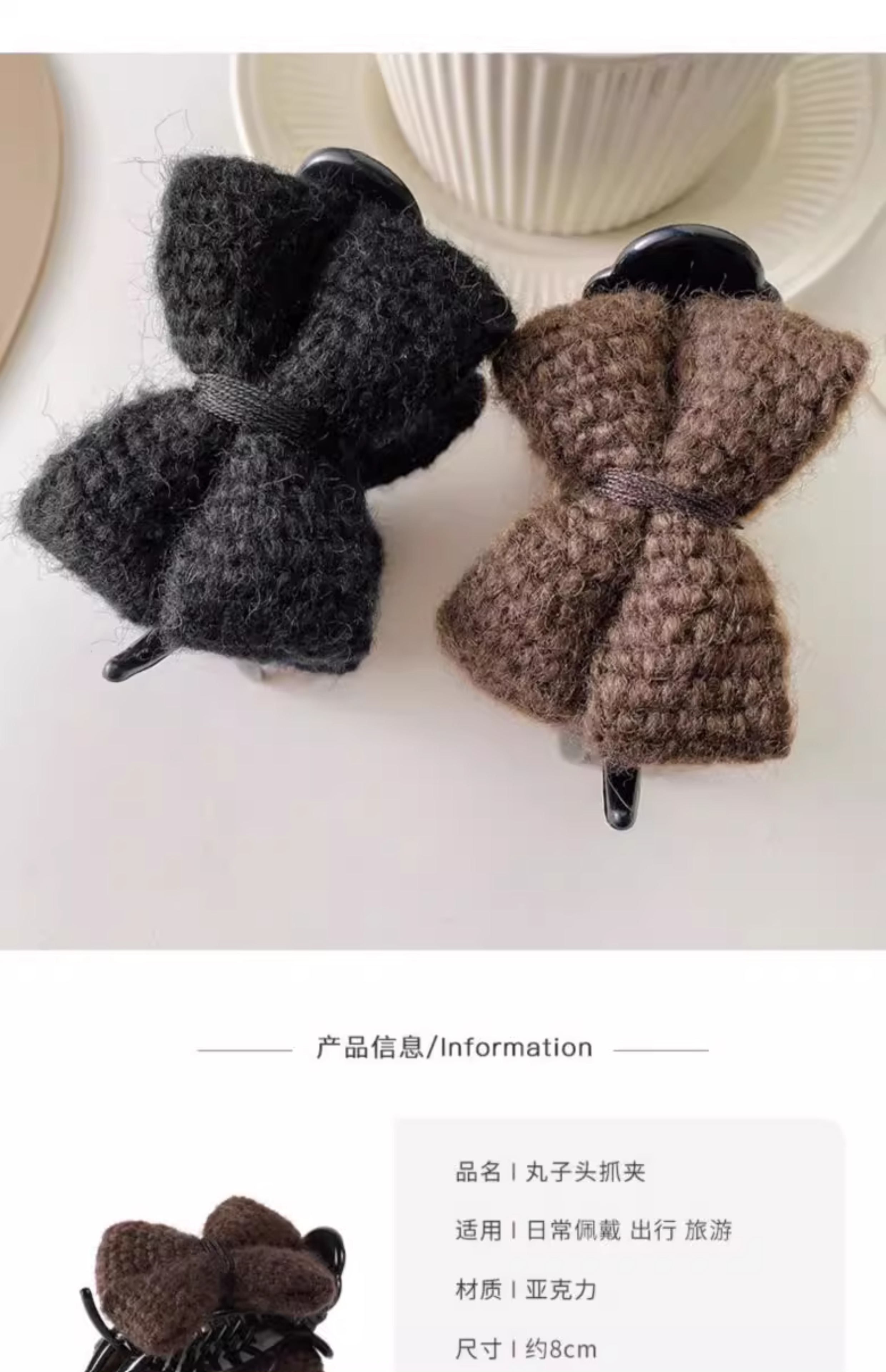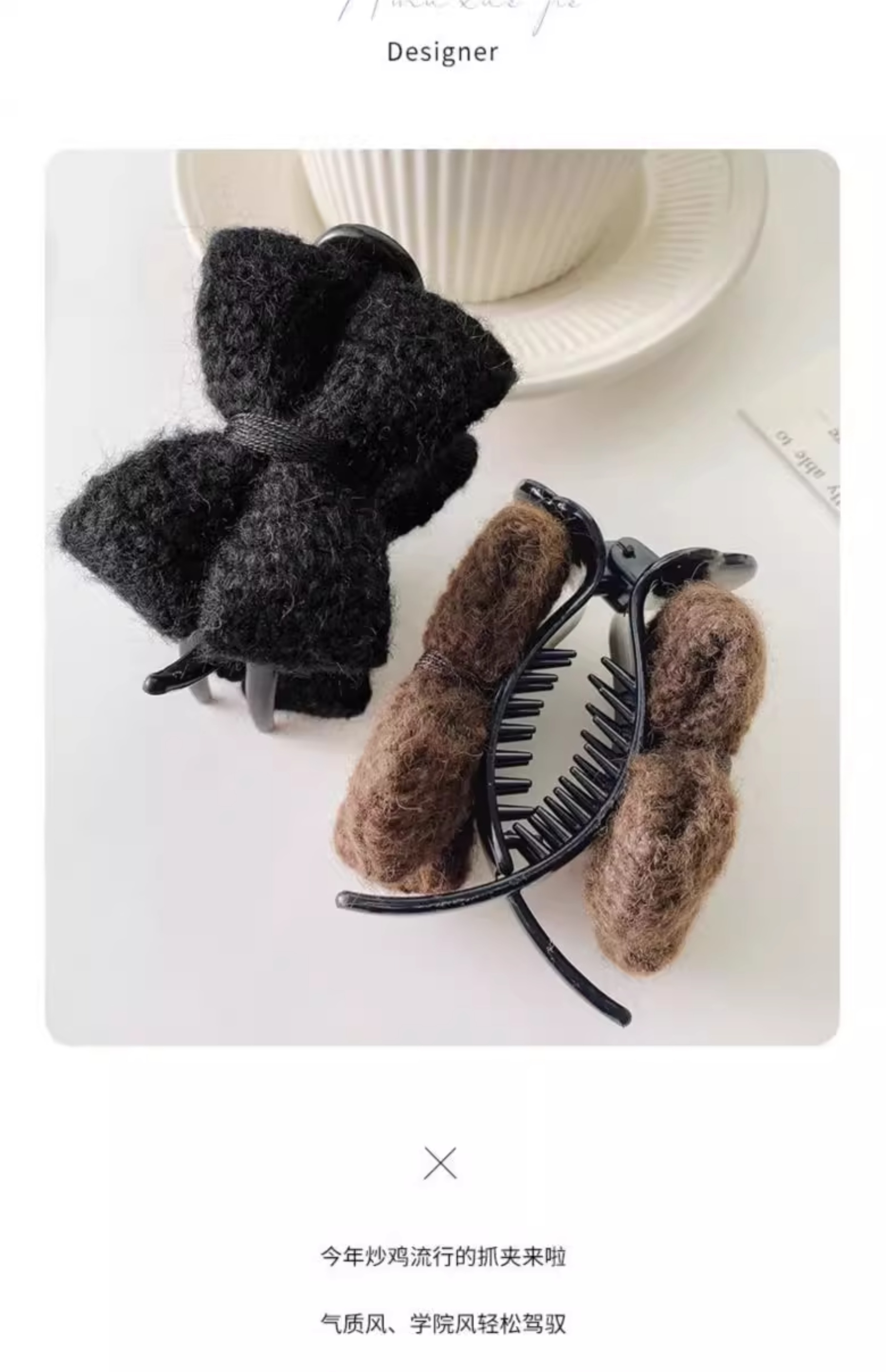 美拉德针织蝴蝶结丸子头抓夹女发夹子头饰盘发神器固定爪夹发卡