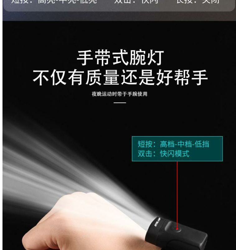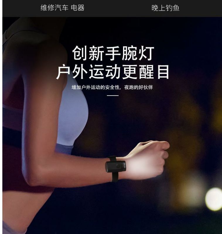 多功能USB迷你充电手腕灯脚腕灯户外运动手电筒自行车头盔灯强光