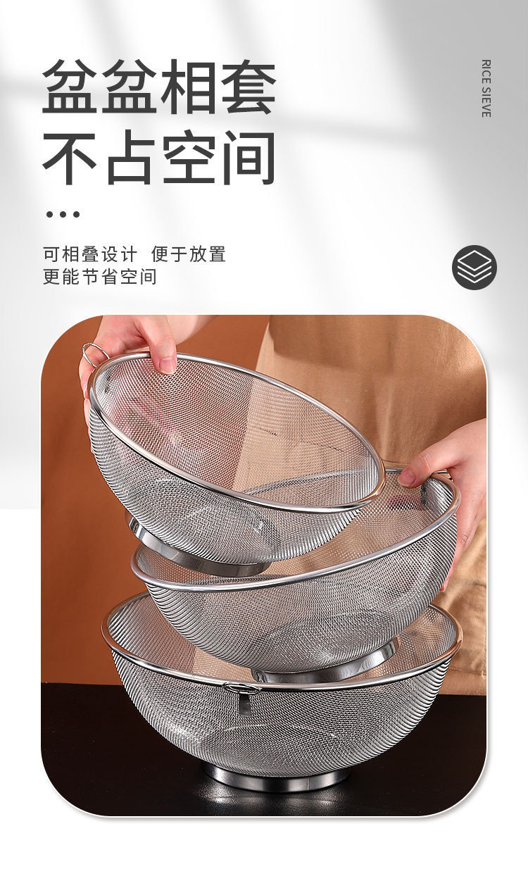 不锈钢小米淘米神器洗米筛子盆细孔过滤勺厨房家用洗菜盆沥水篮子