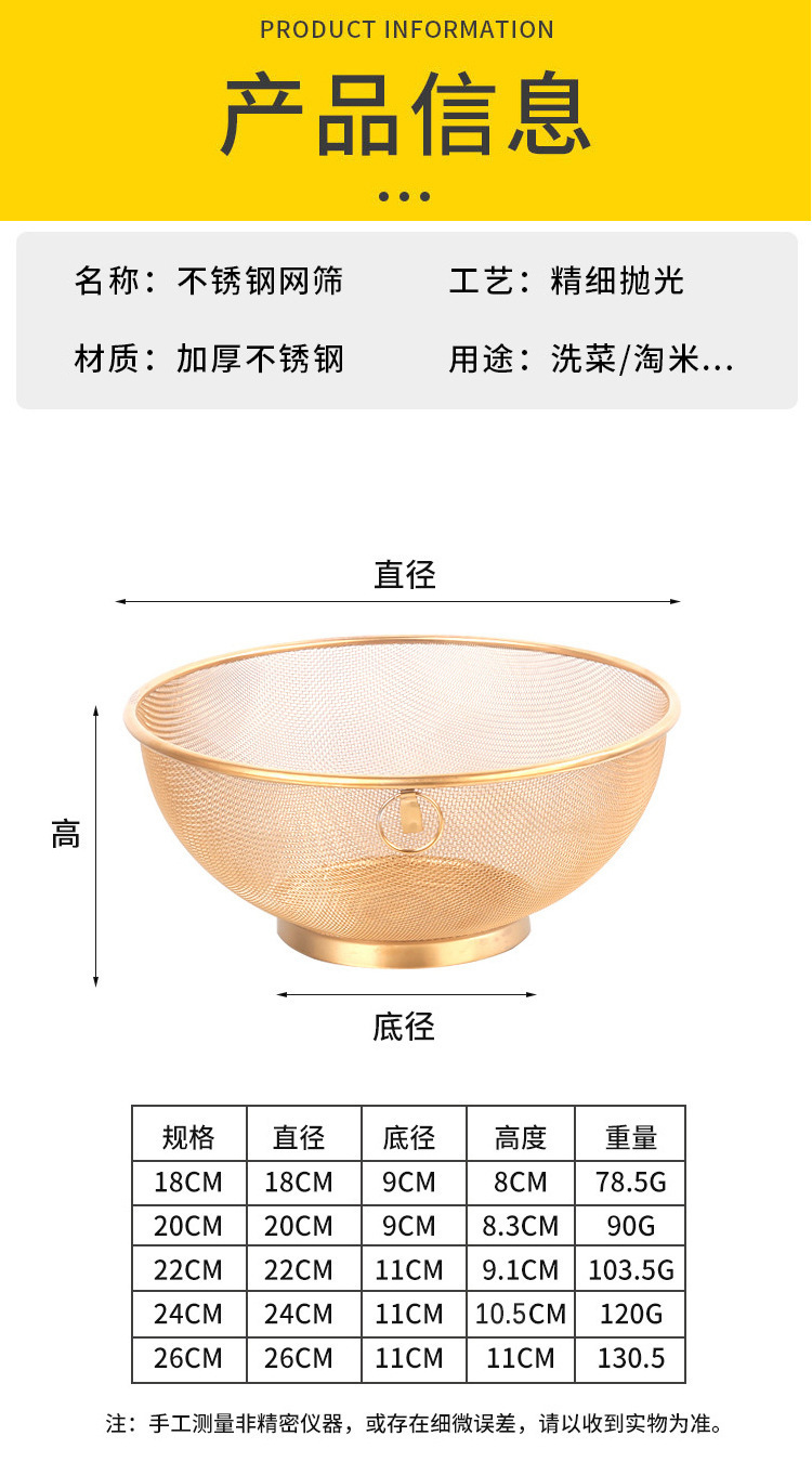304不锈钢厨房洗菜篮子洗菜蓝沥水篮水果篮米筛果盘网筛密网筛子