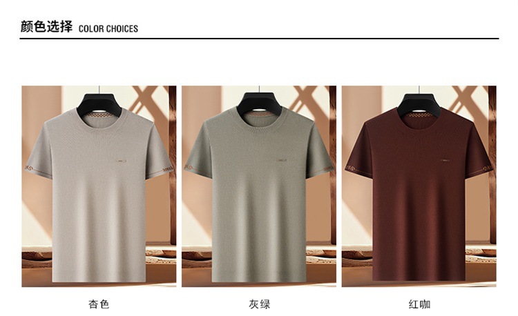 男士polo衫针织含羊毛纯色短袖轻熟休闲中年男款T恤纯色高品质t恤