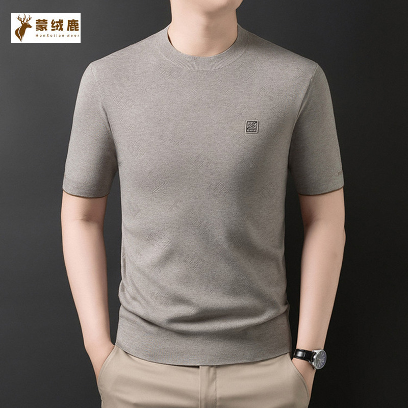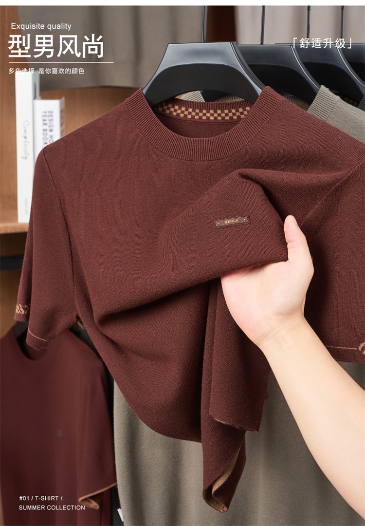男士秋冬新款针织提花压标短袖毛衣季2025圆领纯色百搭潮流T恤装