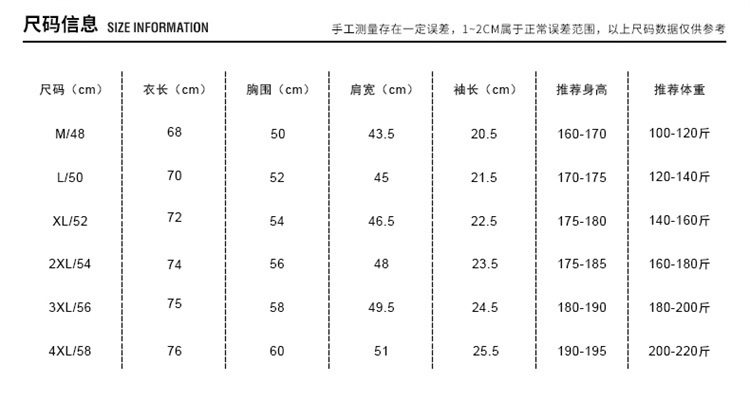 尺码 165-M,170-L,175-XL,180-XXL,185-XXXL,190-XXXXL