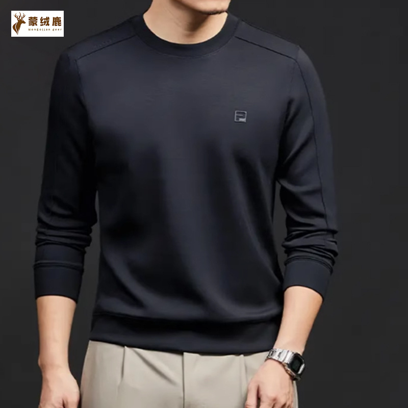 2025新型秋衣底シャツT長袖tシャツ男性凹凸ジャカード丸首パーカー男性春秋服