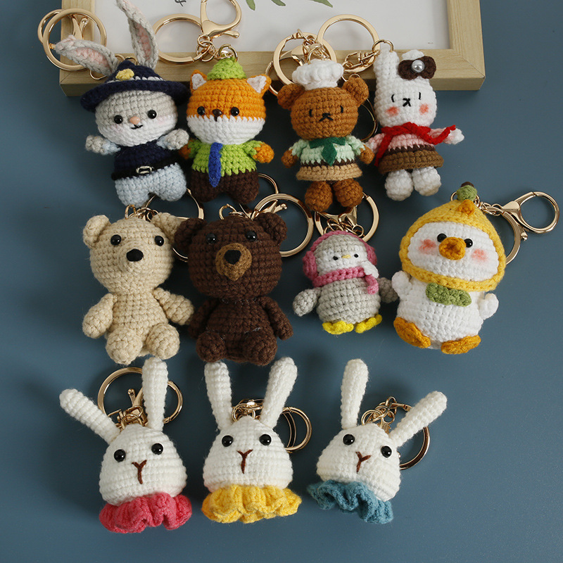 亚马逊热卖手工钩织小挂件 可爱毛线编织钥匙扣 成品手作动物挂饰