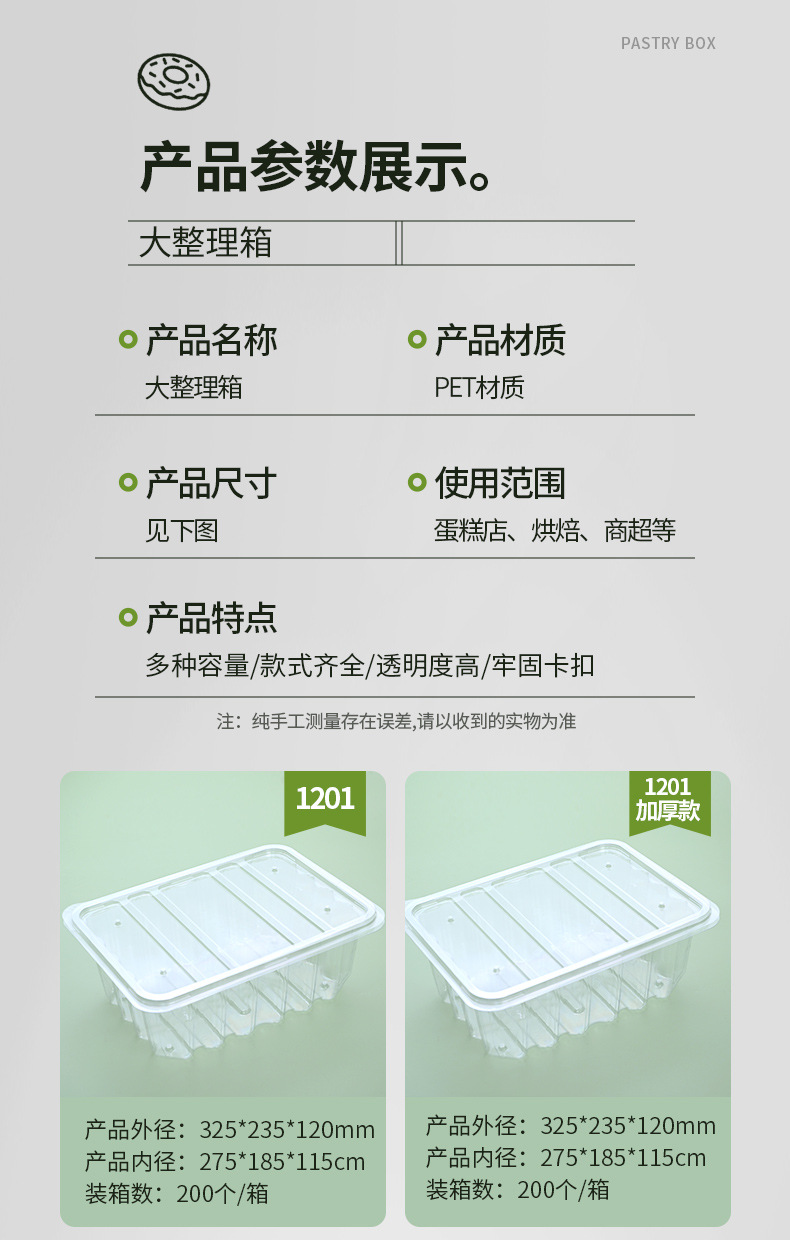 厂家批发零售一次性透明PET材质蛋糕烘焙西点包装盒整理箱